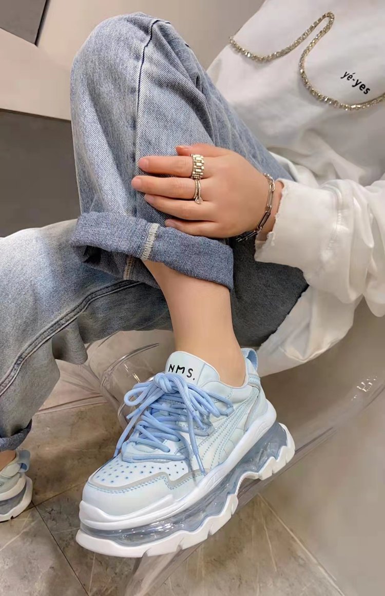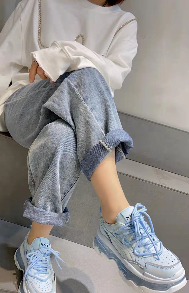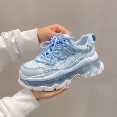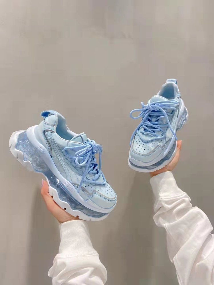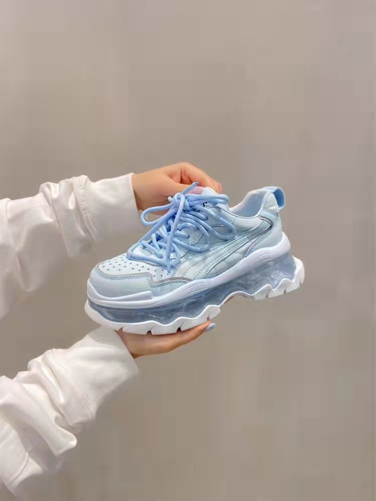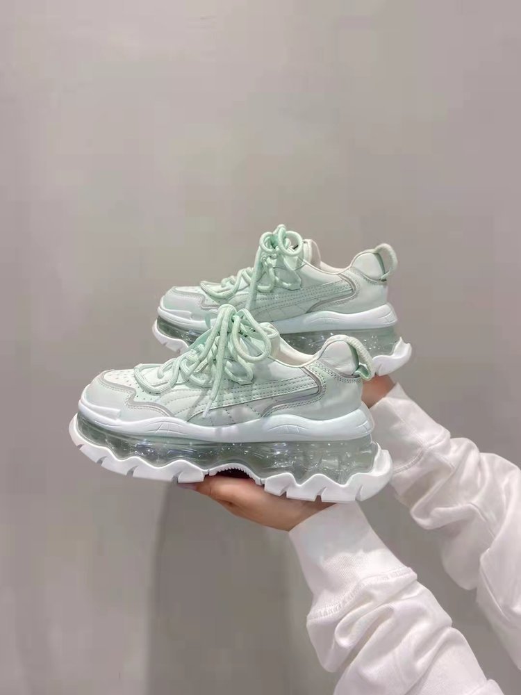 Mùa xuân năm 2023 giày thể thao và giải trí có dây buộc mới dành cho nữ muffin đế dày đệm khí tăng cường bố giày spot