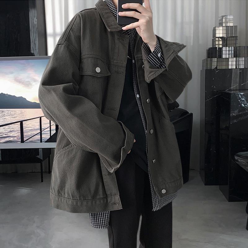 Mùa xuân năm 2023 mới áo khoác denim nam xuyên biên giới màu sắc áo khoác denim xu hướng cỡ lớn hàng đầu Nhật Bản