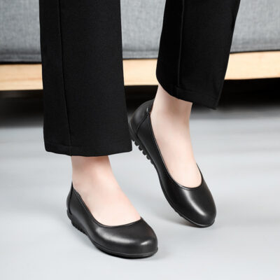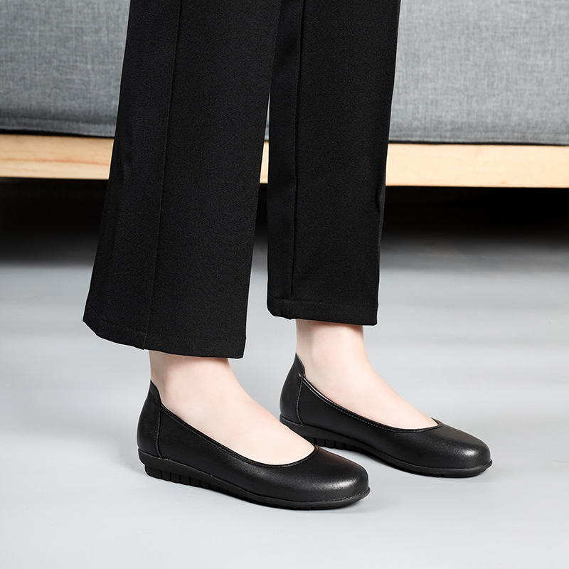 Mùa Xuân Năm 2023 Mới Giày Đơn Nữ Dày Với Chuyên Nghiệp Tiếp Viên Giày Công Sở Giày Cao Gót Mũi Tròn Giày Da Nữ Làm Việc
