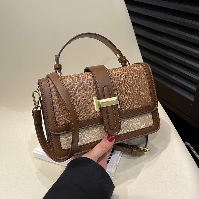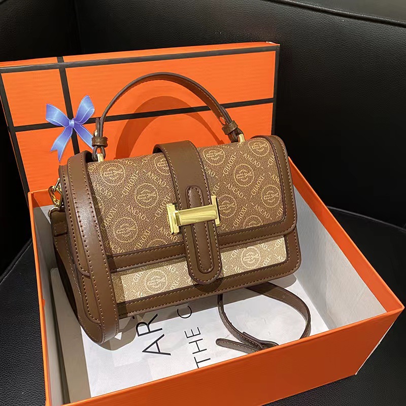 Mùa xuân năm 2023 mới phát sóng trực tiếp phong cách đẹp xu hướng thời trang retro túi vuông nhỏ dung tích lớn màu sắc tương phản túi đeo vai nữ