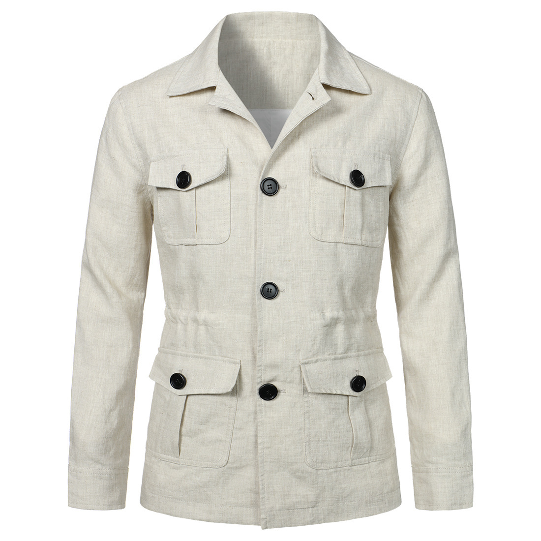 Mùa xuân năm 2023 mới ve áo nhiều túi dụng cụ áo khoác nam vải lanh săn áo khoác YJ201