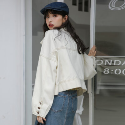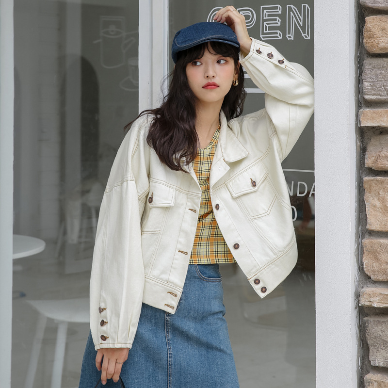 Mùa xuân năm 2023 phong cách Hàn Quốc giản dị BF quạt xe áo khoác dáng rộng phù hợp với áo khoác denim ngắn thời trang nữ