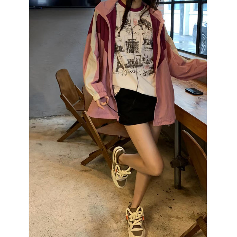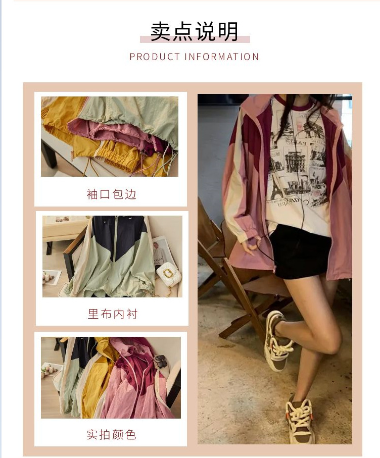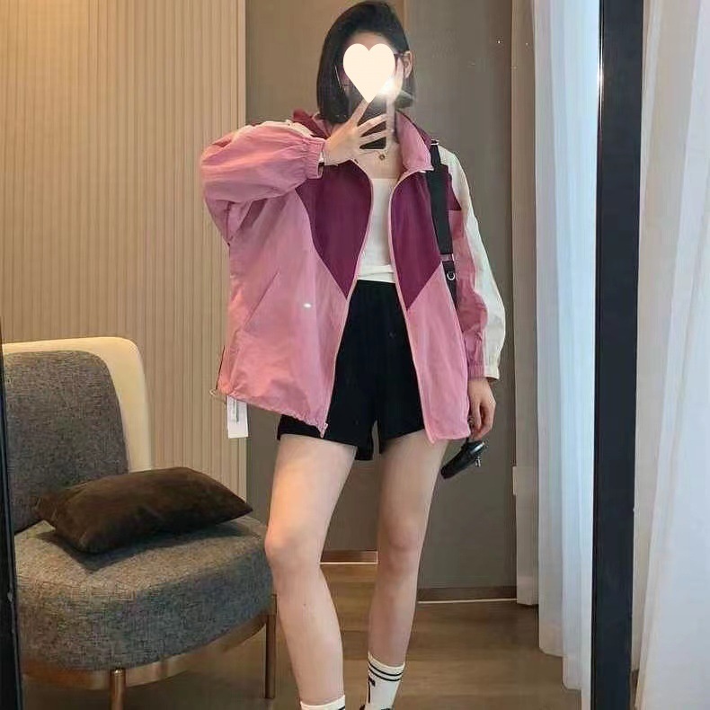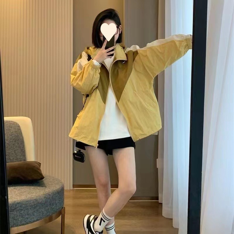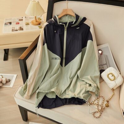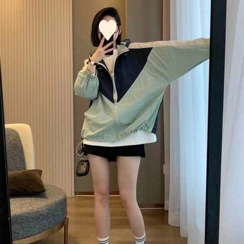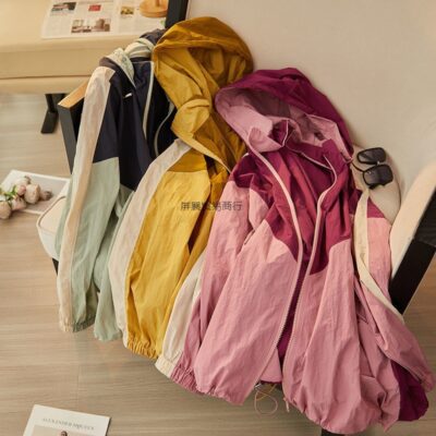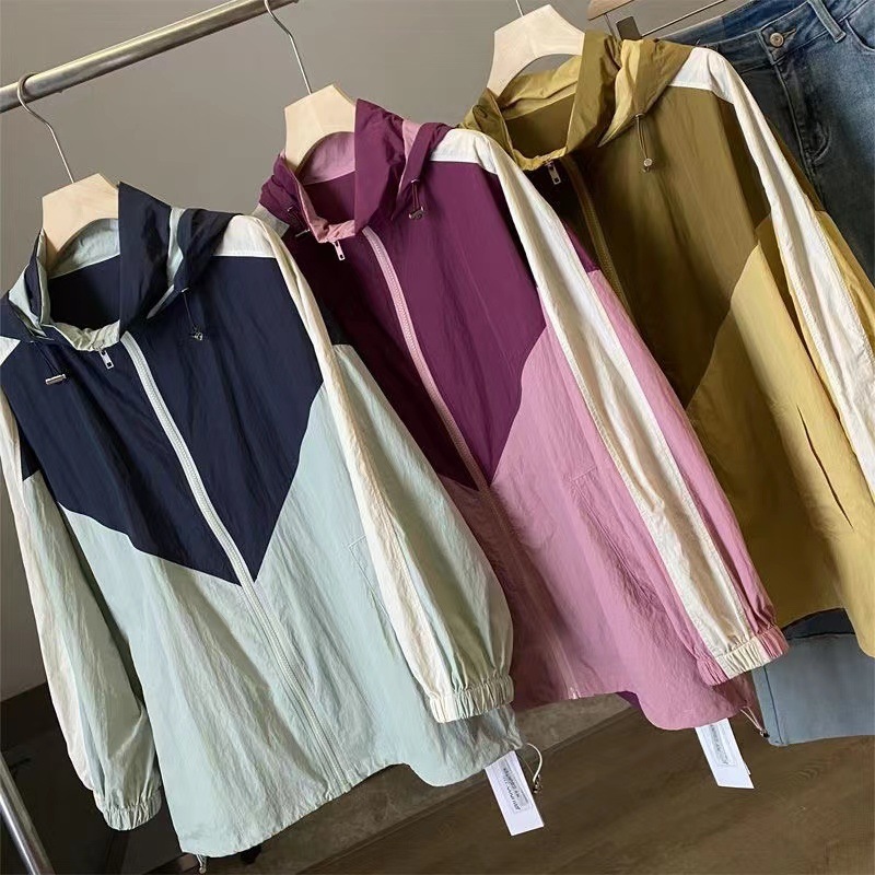Mùa xuân và mùa hè 2023 mới thể thao và giải trí màu sắc tương phản khâu phần mỏng áo khoác chống nắng có mũ trùm đầu áo khoác ngoài