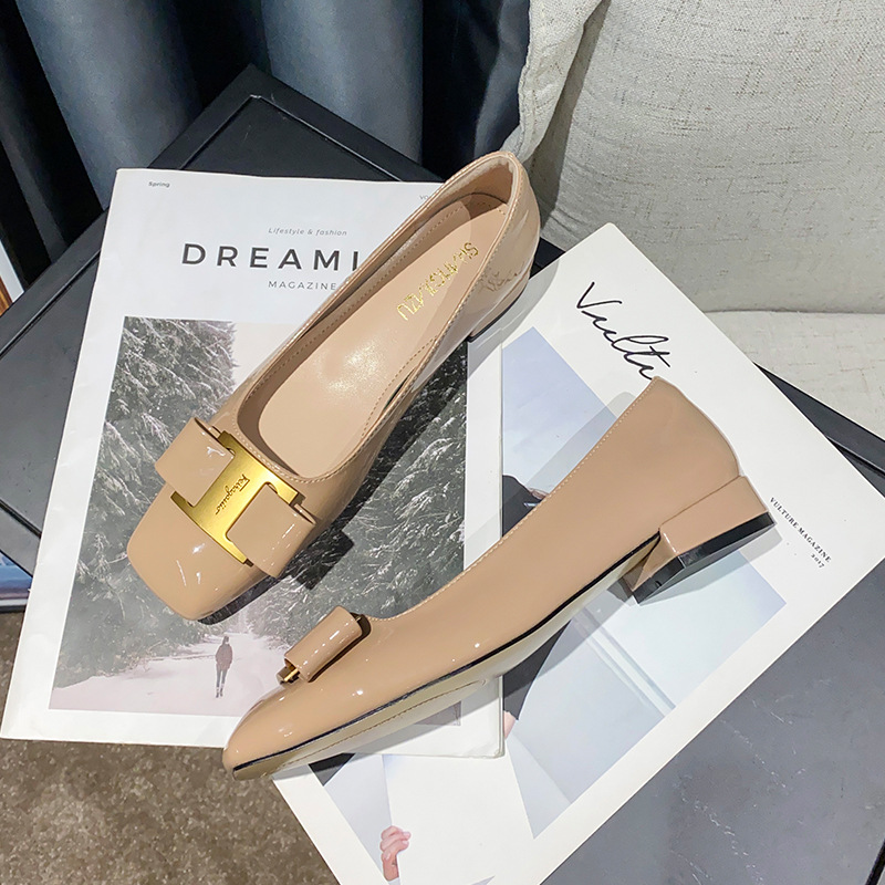 Mùa xuân và mùa hè 2023 phiên bản Hàn Quốc mới giày đơn đầu vuông thoải mái khóa kim loại giày đơn nữ nhẹ nhàng miệng nông giày nữ gót thấp cỡ nhỏ