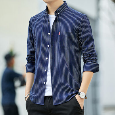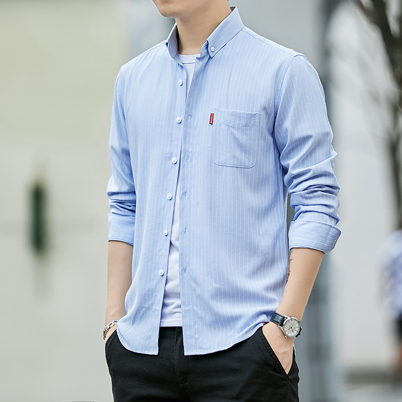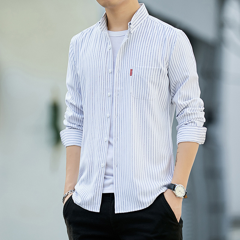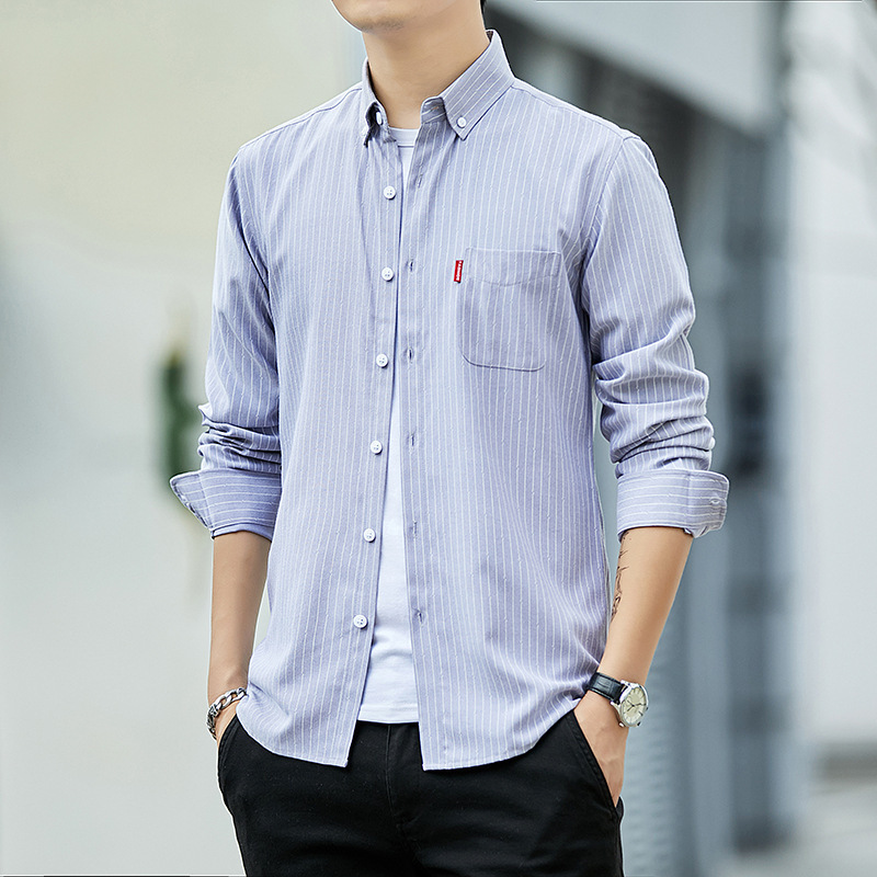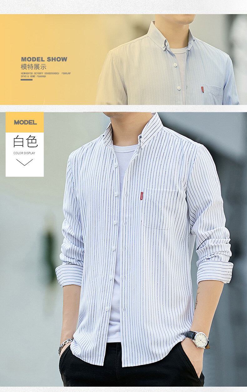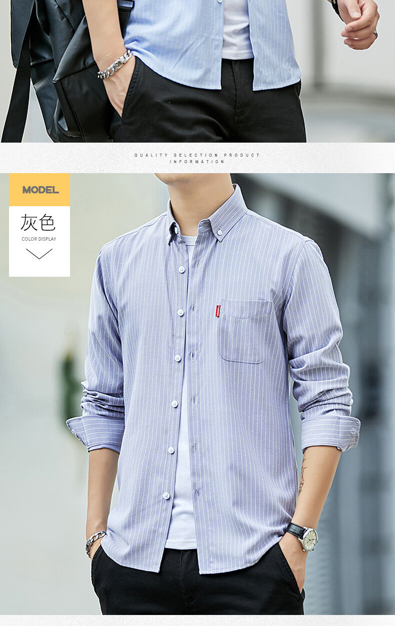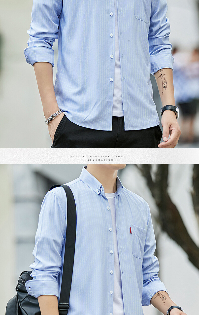 Mùa xuân và mùa hè áo sơ mi sọc chất lượng cao nam dài tay thanh niên công sở nhẹ áo sơ mi giản dị không cần ủi áo sơ mi đơn giản hợp thời trang