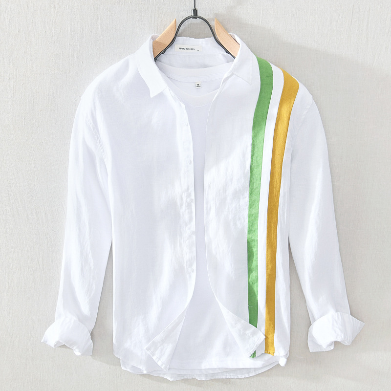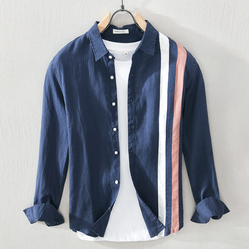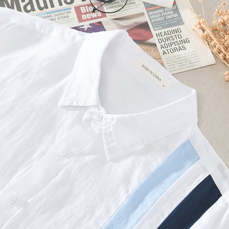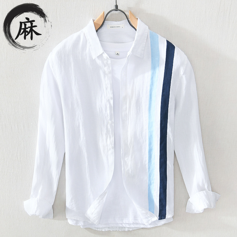 Mùa xuân và mùa hè mới của đàn ông vải lanh dài tay áo sơ mi nam rộng kích thước lớn nối thanh niên hàng đầu triều M2052