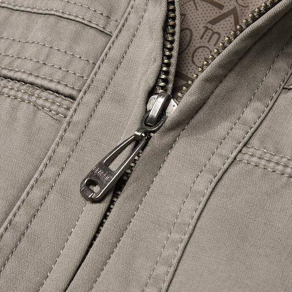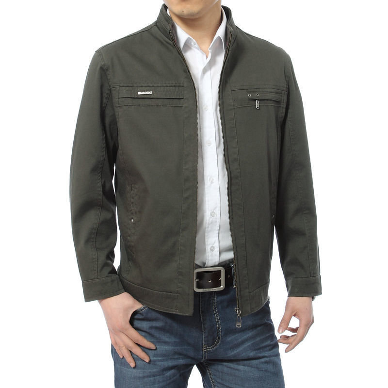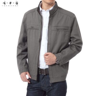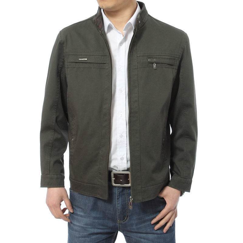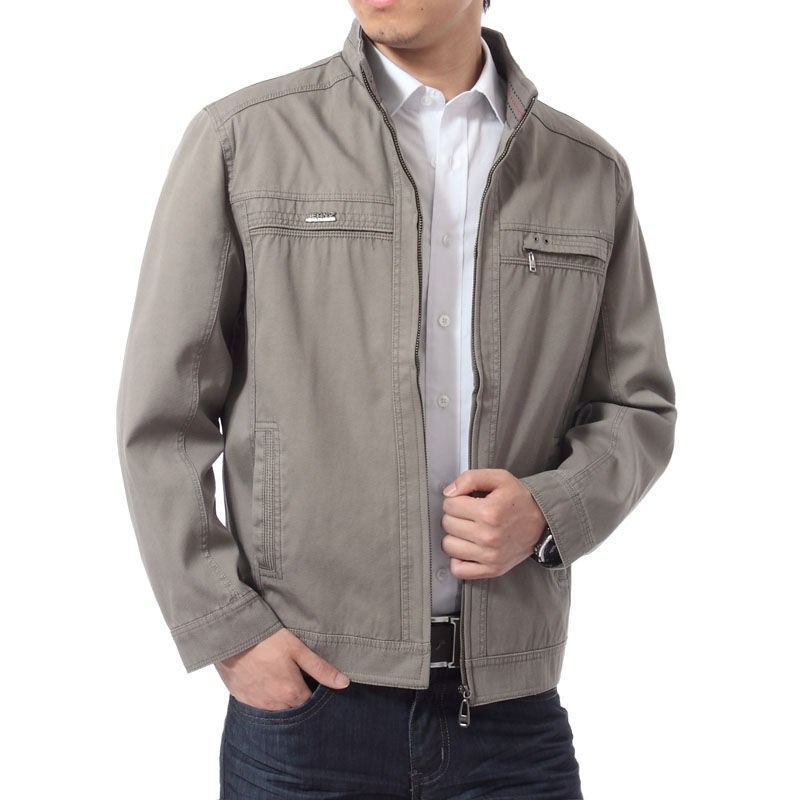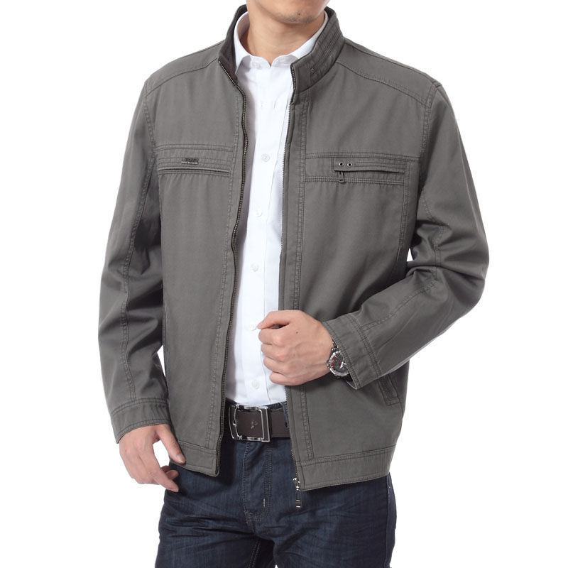 Mùa xuân và mùa hè mỏng phần nam trung niên và cao tuổi áo khoác cổ đứng áo khoác giản dị bố mặc cổ đứng túi khóa kéo nam