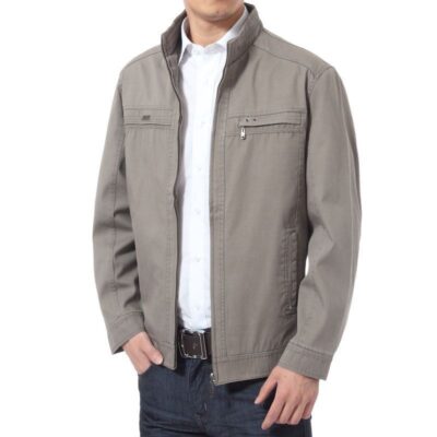 Mùa xuân và mùa hè mỏng phần nam trung niên và cao tuổi áo khoác cổ đứng áo khoác giản dị bố mặc cổ đứng túi khóa kéo nam