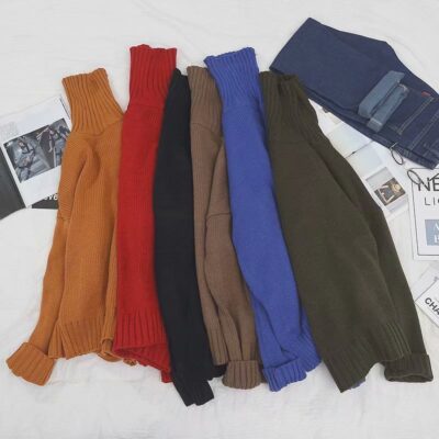 Mùa Xuân Và Mùa Thu 2021 Dày Mới Cao Cổ Rời Áo Len Nam Hàn Quốc Hợp Thời Trang Cặp Đôi Phong Cách Hồng Kông Dệt Kim Áo Len