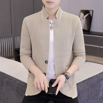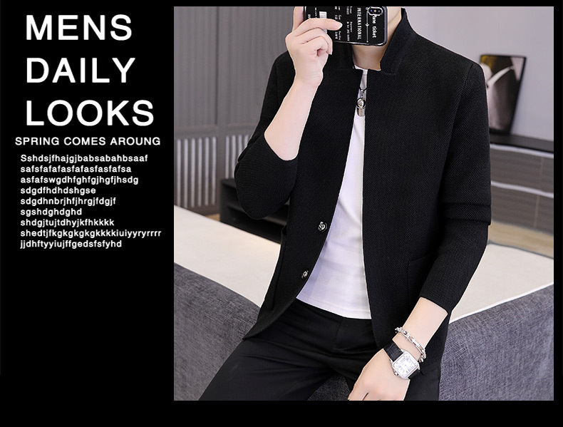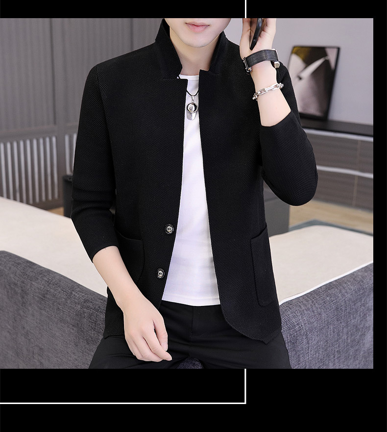 Mùa Xuân Và Mùa Thu 2022 Mới Nam Áo Len Cardigan Màu Slim Công Sở Áo Len Dệt Kim Áo Khoác