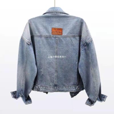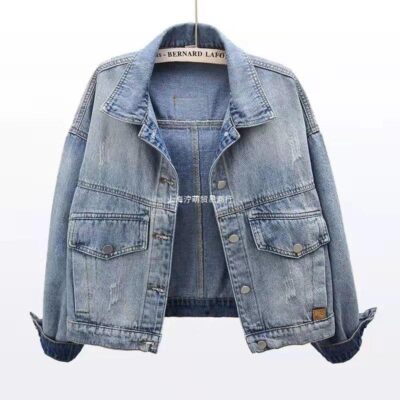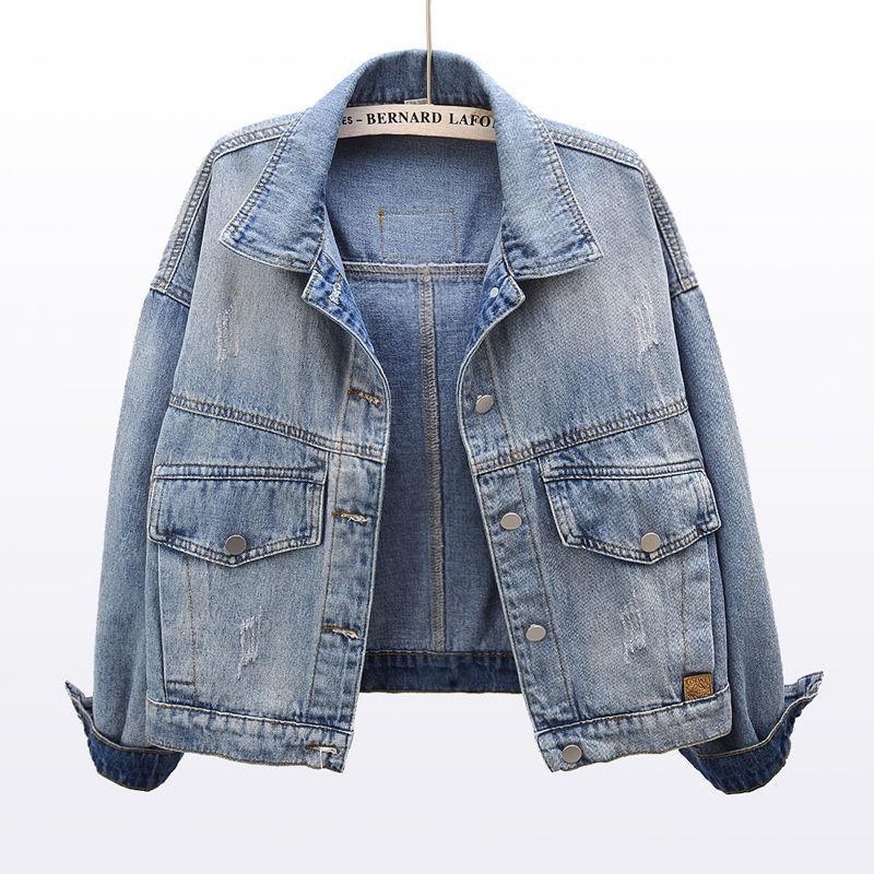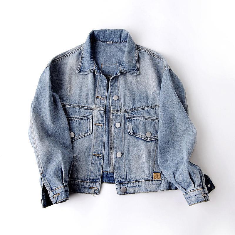 Mùa xuân và mùa thu 2023 áo khoác denim cardigan ngắn dáng rộng phong cách Hàn Quốc phù hợp với mọi lứa tuổi áo khoác ngắn hàng đầu