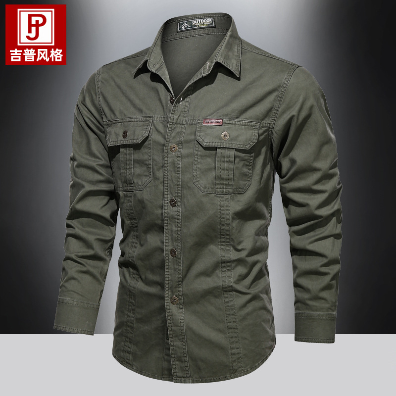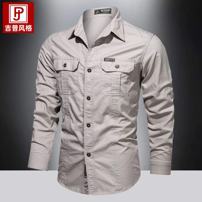Mùa Xuân Và Mùa Thu 2023 Áo Sơ Mi Nam Dài Tay Cotton Nam Áo Sơ Mi Rời Ngoài Trời Thường Bảo Hộ Lao Động Áo Khoác Áo Khoác