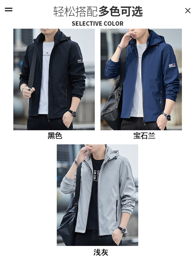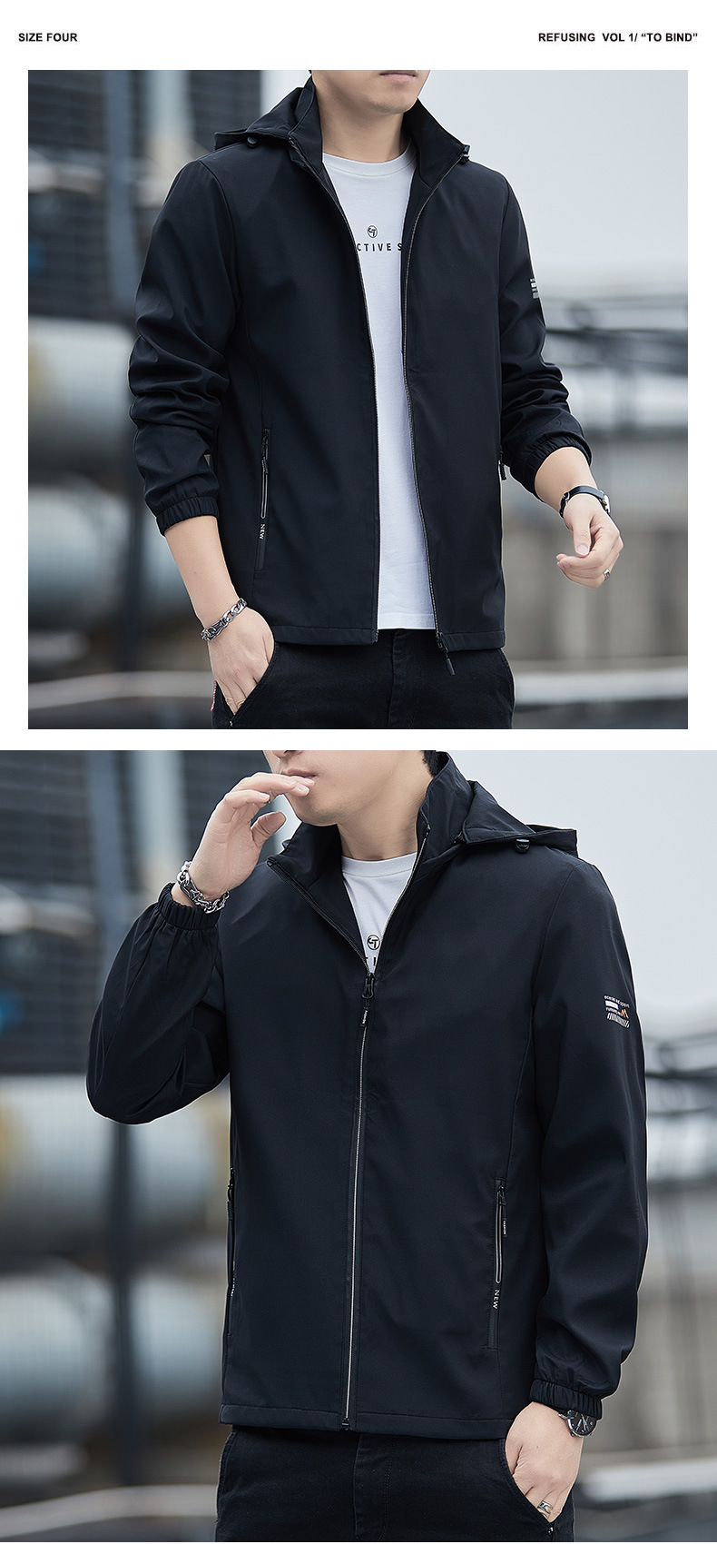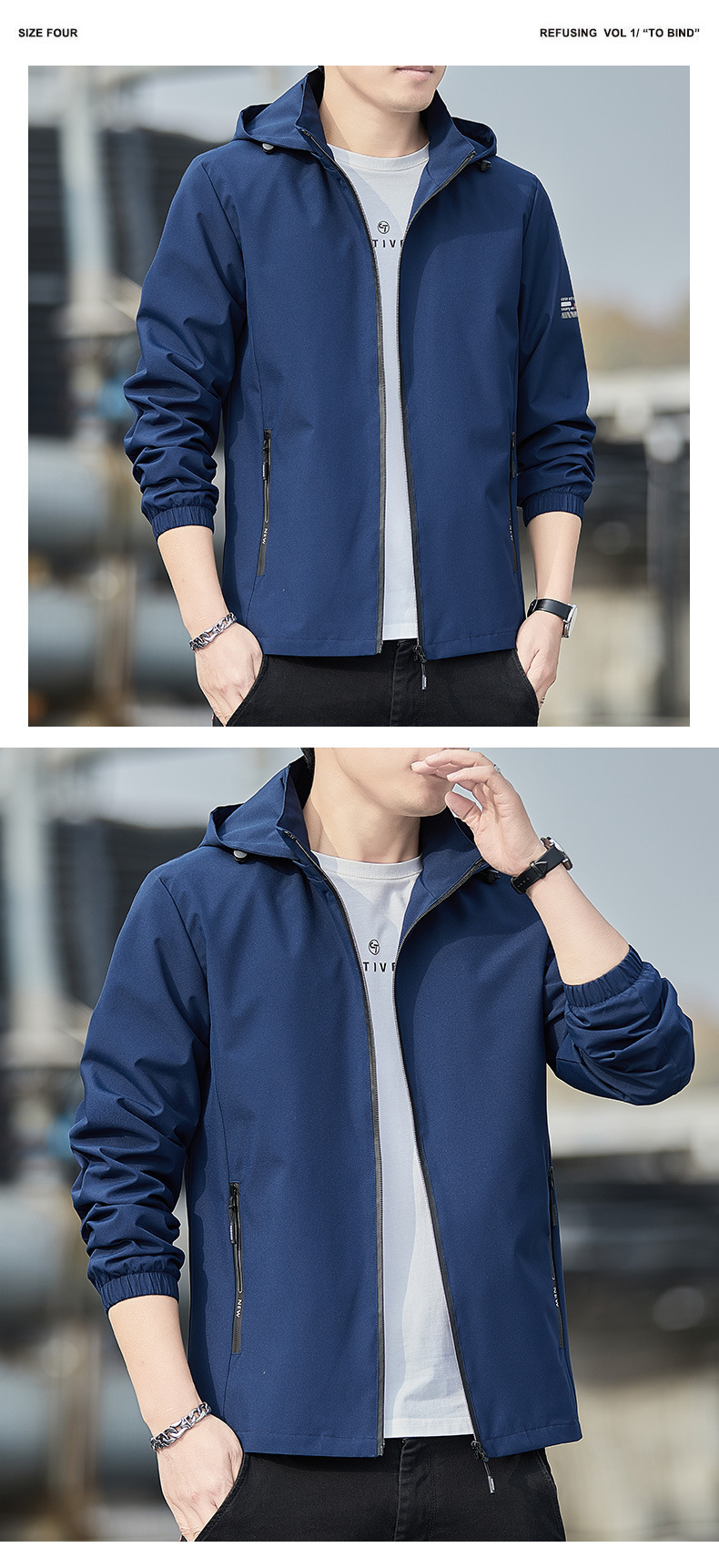 Mùa Xuân Và Mùa Thu 2023 Mới Áo Khoác Nam Áo Khoác Mỏng Áo Khoác Nam Đồng Màu Có Mũ Cổ Cho Thể Thao Hợp Thời Trang