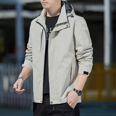 Mùa Xuân Và Mùa Thu 2023 Mới Áo Khoác Nam Áo Khoác Mỏng Áo Khoác Nam Đồng Màu Có Mũ Cổ Cho Thể Thao Hợp Thời Trang