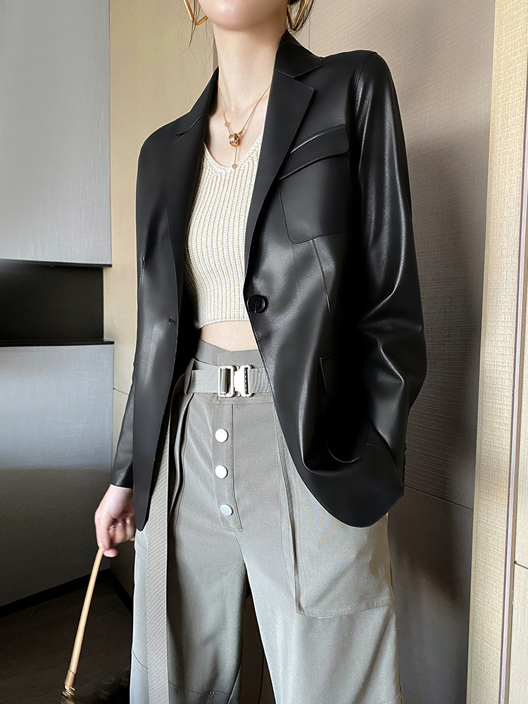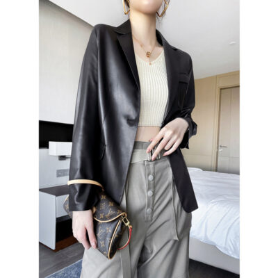 Mùa Xuân Và Mùa Thu 2023 Mới Haining Da Thật Nữ Ngắn Tính Khí Phù Hợp Với Áo Khoác Da Cừu Áo Khoác Lông Áo Khoác