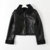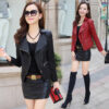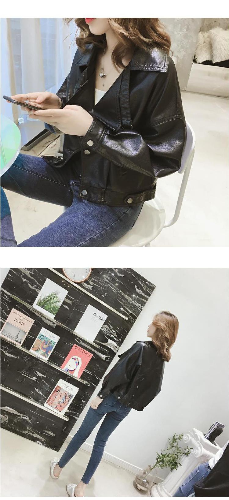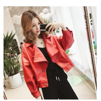 Mùa xuân và mùa thu 2023 mới phong cách Hồng Kông dáng rộng ngắn áo khoác da mô tô nữ áo khoác xu hướng