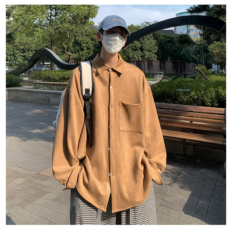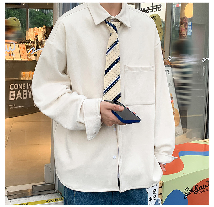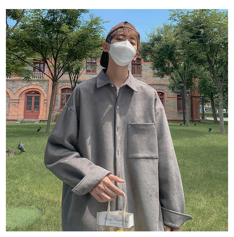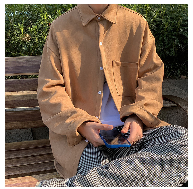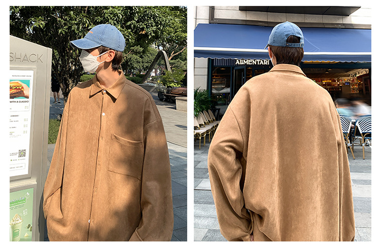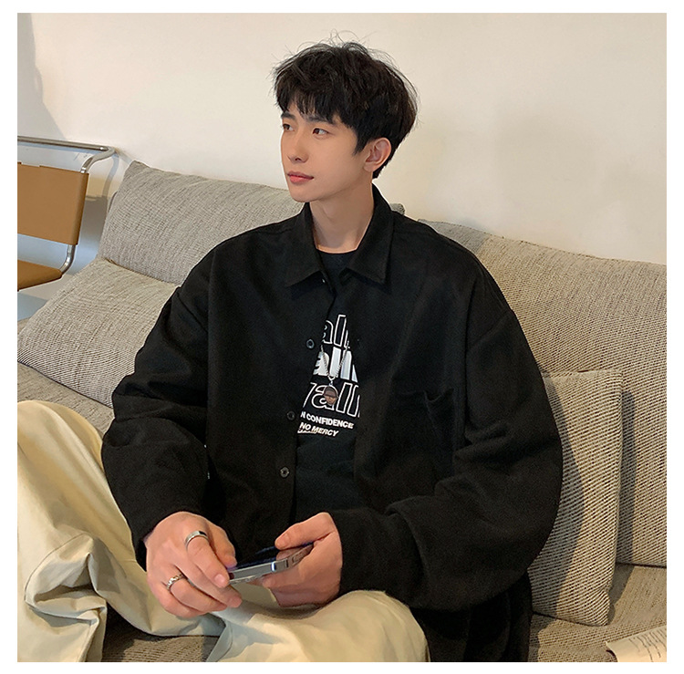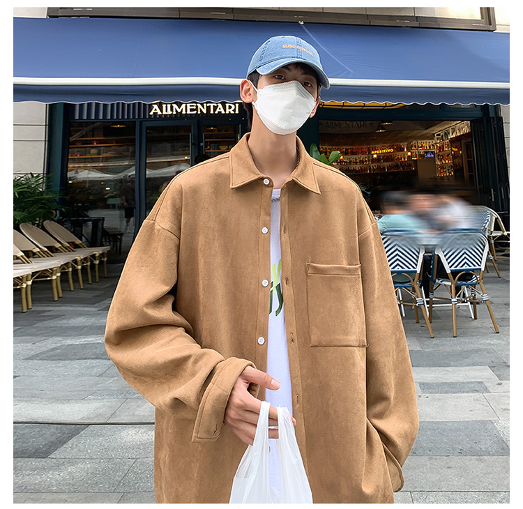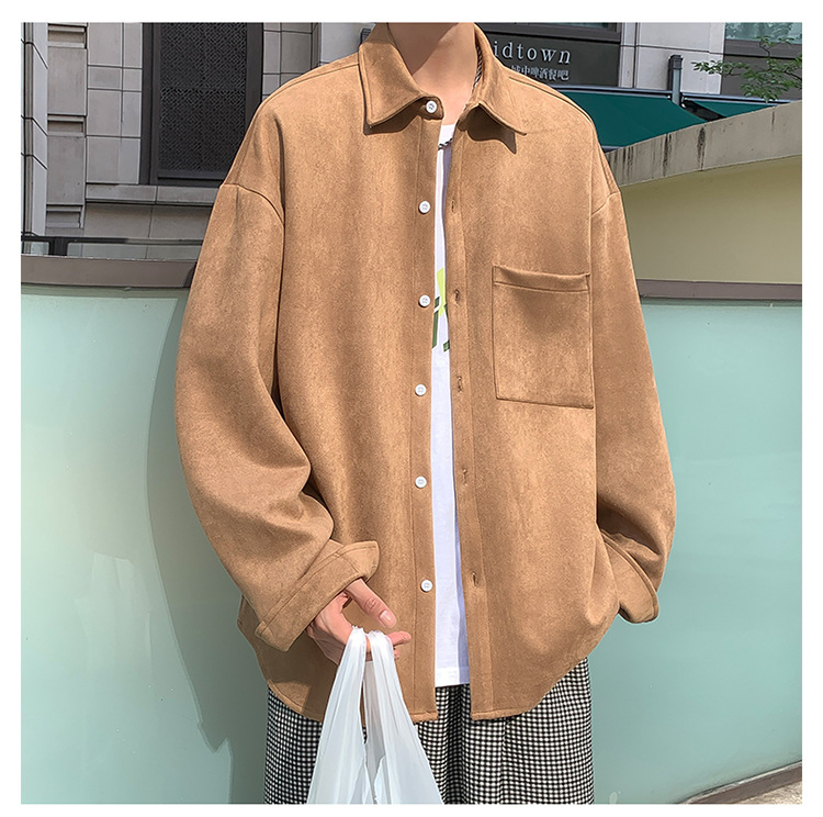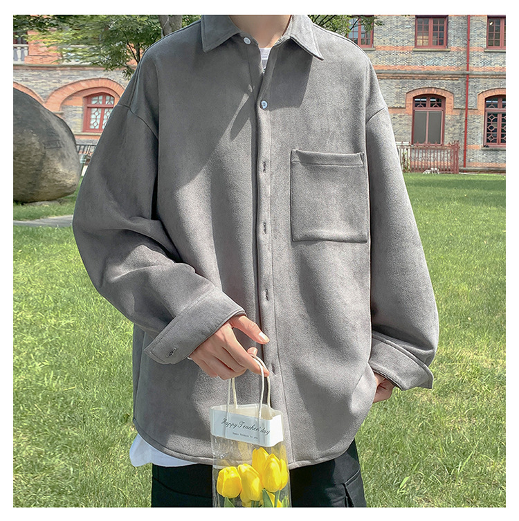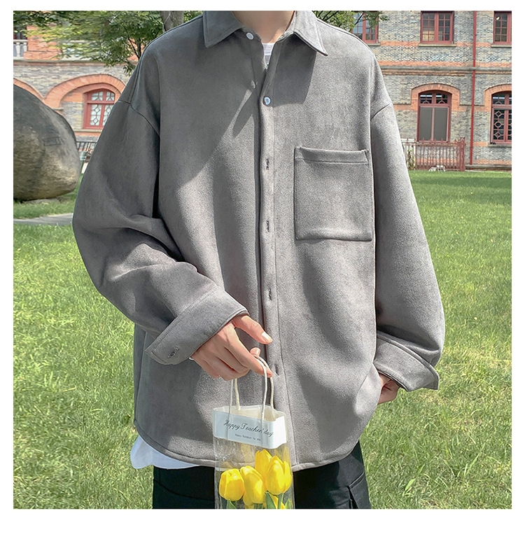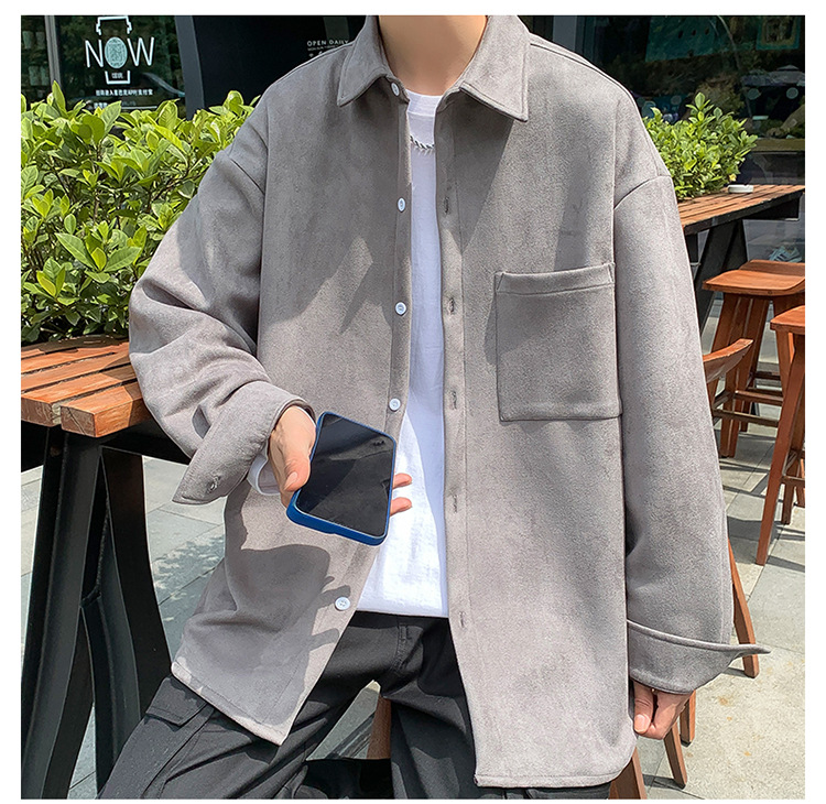 Mùa Xuân Và Mùa Thu 2023 Sản Phẩm Mới Áo Khoác Ve Áo Da Lộn Dày Phong Cách Hợp Thời Trang Thương Hiệu Nam Áo Sơ Mi Dài Tay Áo Khoác