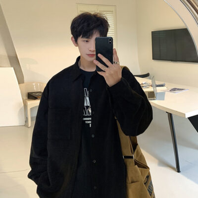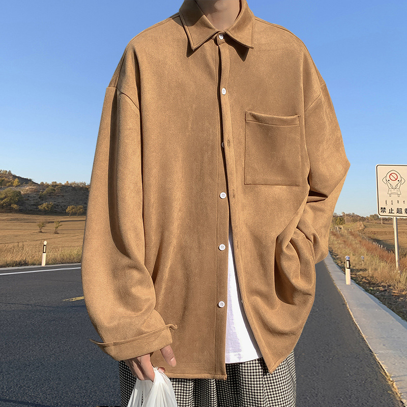 Mùa Xuân Và Mùa Thu 2023 Sản Phẩm Mới Áo Khoác Ve Áo Da Lộn Dày Phong Cách Hợp Thời Trang Thương Hiệu Nam Áo Sơ Mi Dài Tay Áo Khoác