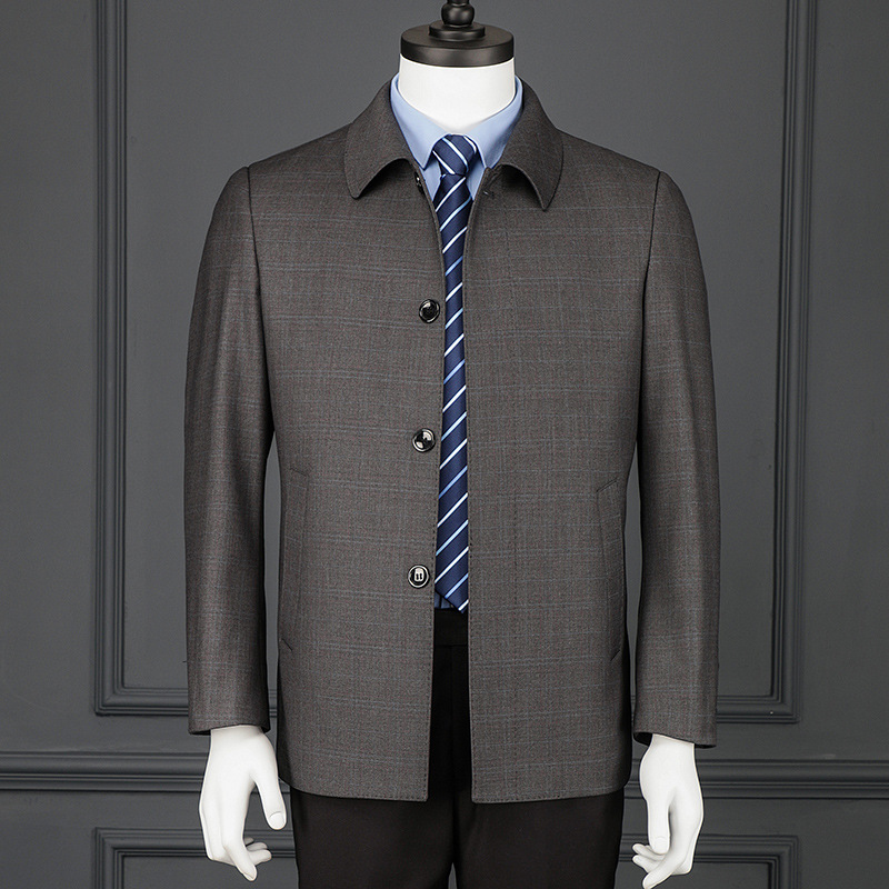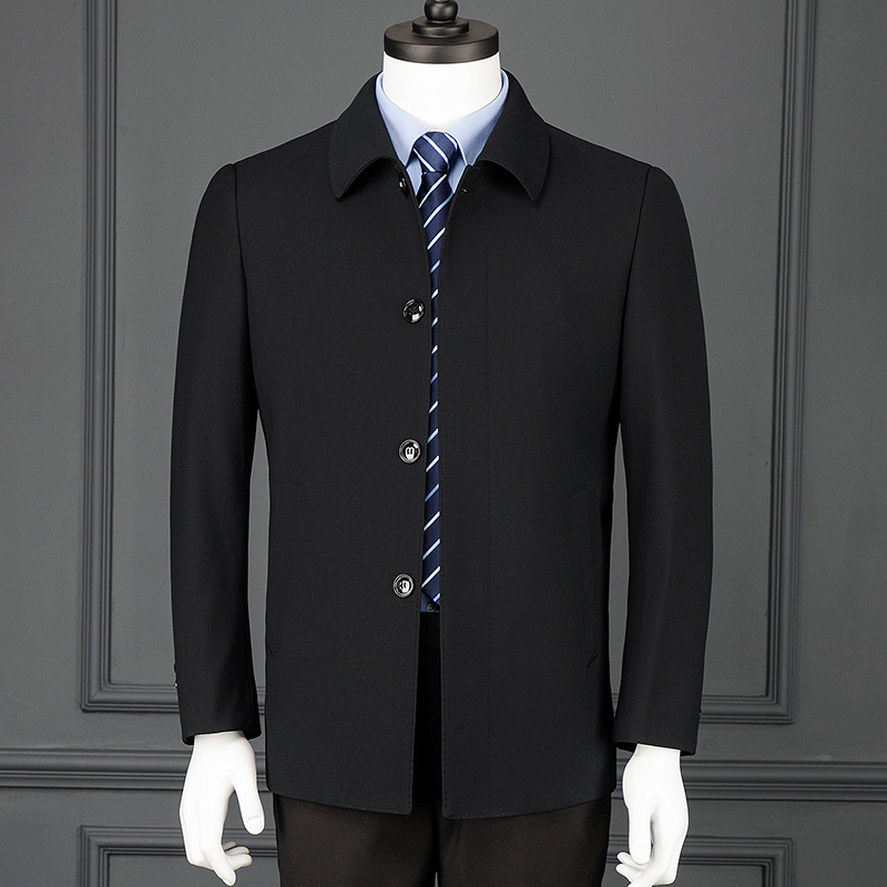 Mùa xuân và mùa thu 2023 thương hiệu áo khoác nam ve áo rời trung niên và người cao tuổi áo khoác len nam công sở áo khoác thường