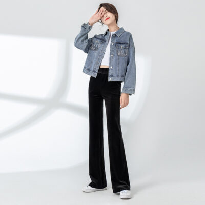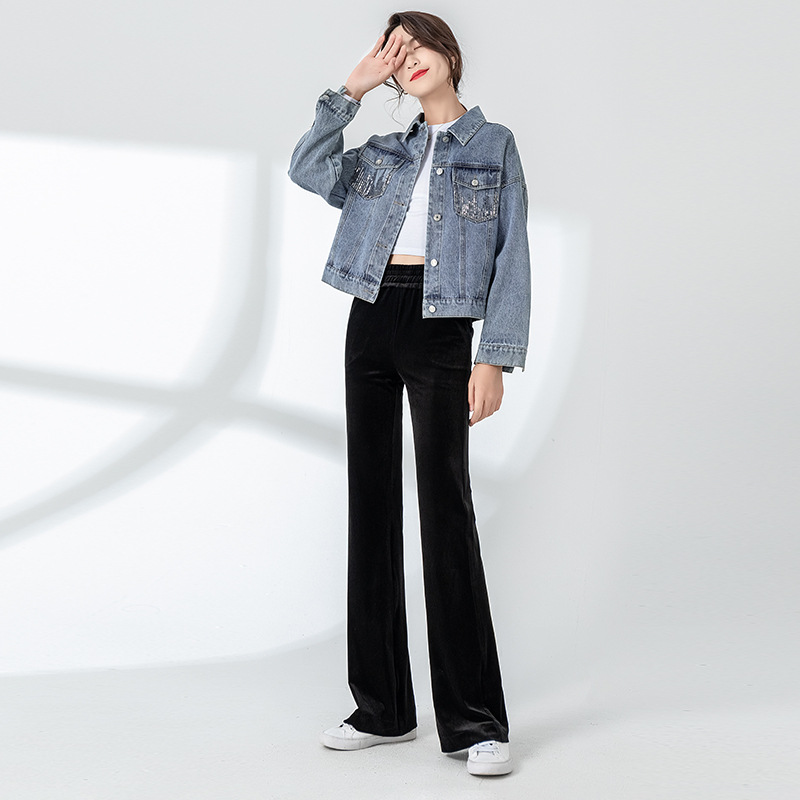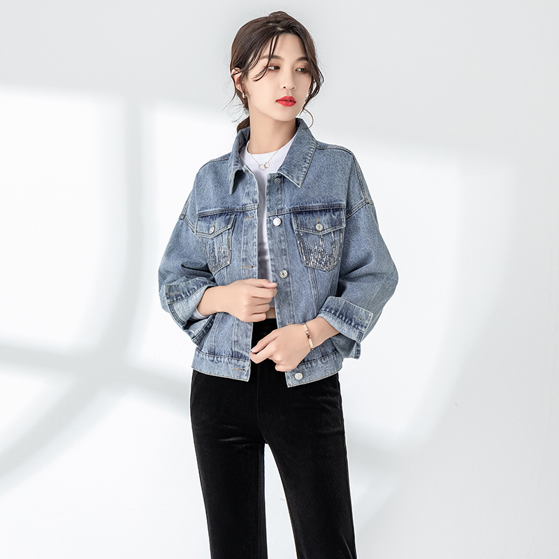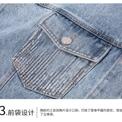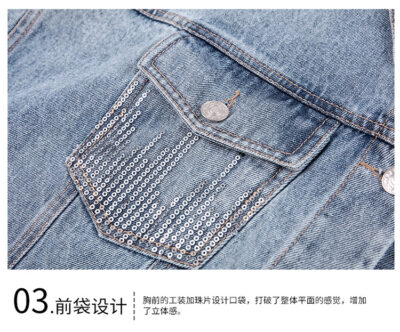 Mùa xuân và mùa thu 2023 ve áo mới phiên bản Hàn Quốc của công nghiệp nặng áo khoác denim đính sequin áo khoác nữ dài tay đẹp trai hàng đầu