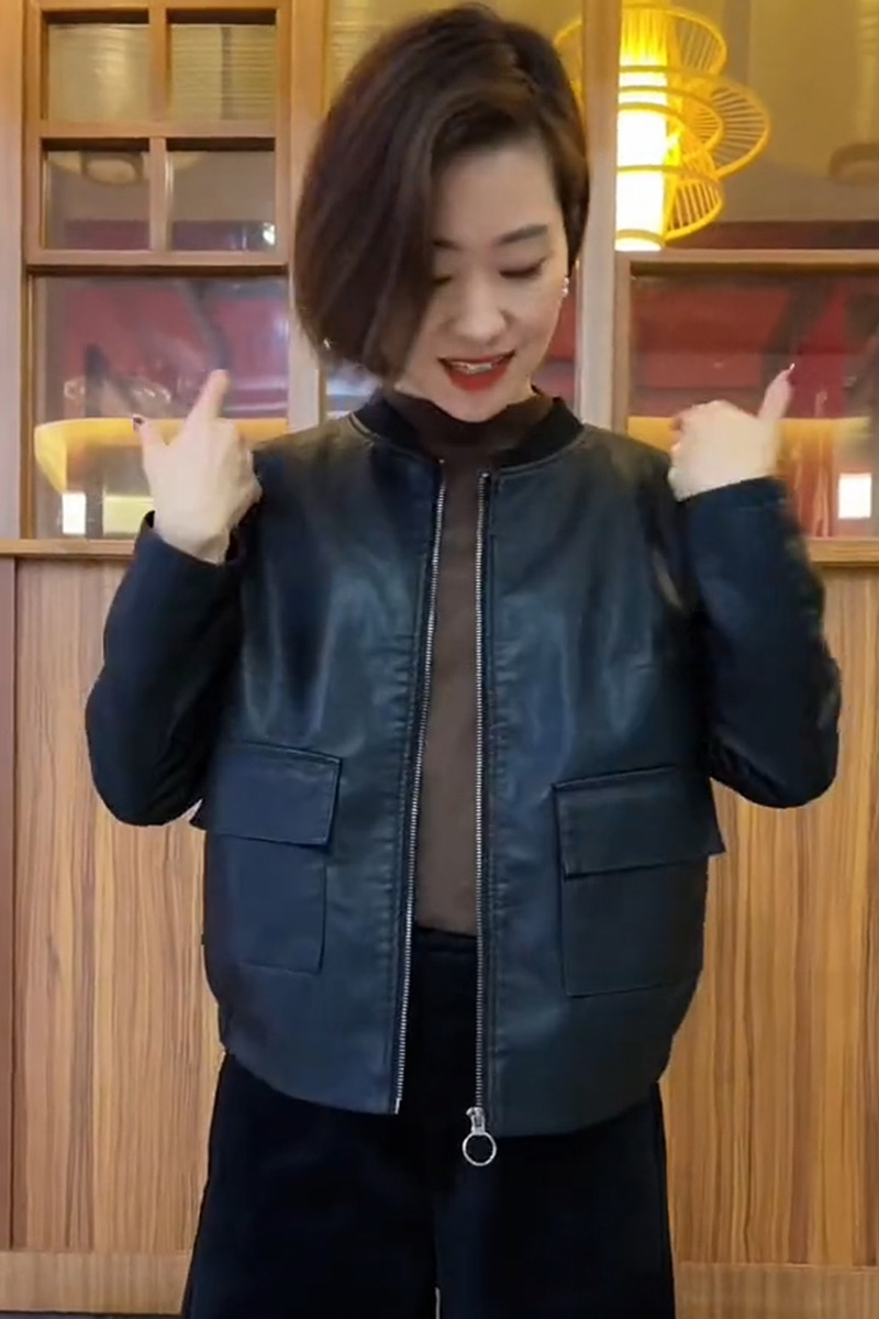 Mùa xuân và mùa thu Áo khoác da ngắn của phụ nữ Áo khoác da được giặt mỏng vừa vặn Sweet Top Áo khoác da cổ đứng mùa thu và mùa đông