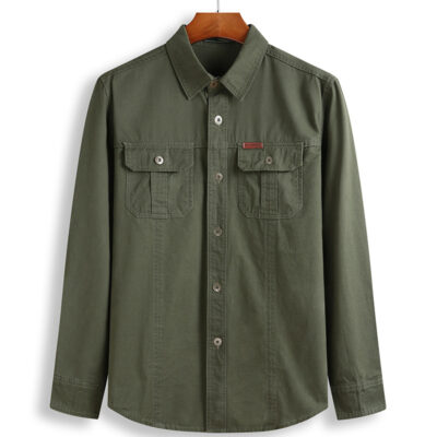Mùa xuân và mùa thu cotton cộng với chất béo cộng với kích thước áo sơ mi nam dài tay của người đàn ông béo dụng cụ quân sự chất béo giản dị cho người đàn ông béo áo sơ mi