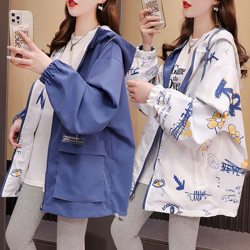 Mùa xuân và mùa thu hai mặt tích cực và tiêu cực áo khoác dụng cụ nữ 2023 mới phần mỏng rời kích thước lớn thiết kế giản dị áo khoác hàng đầu