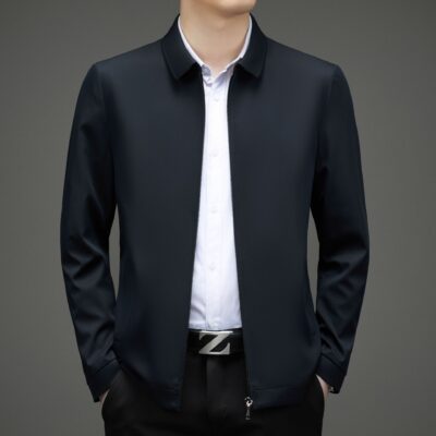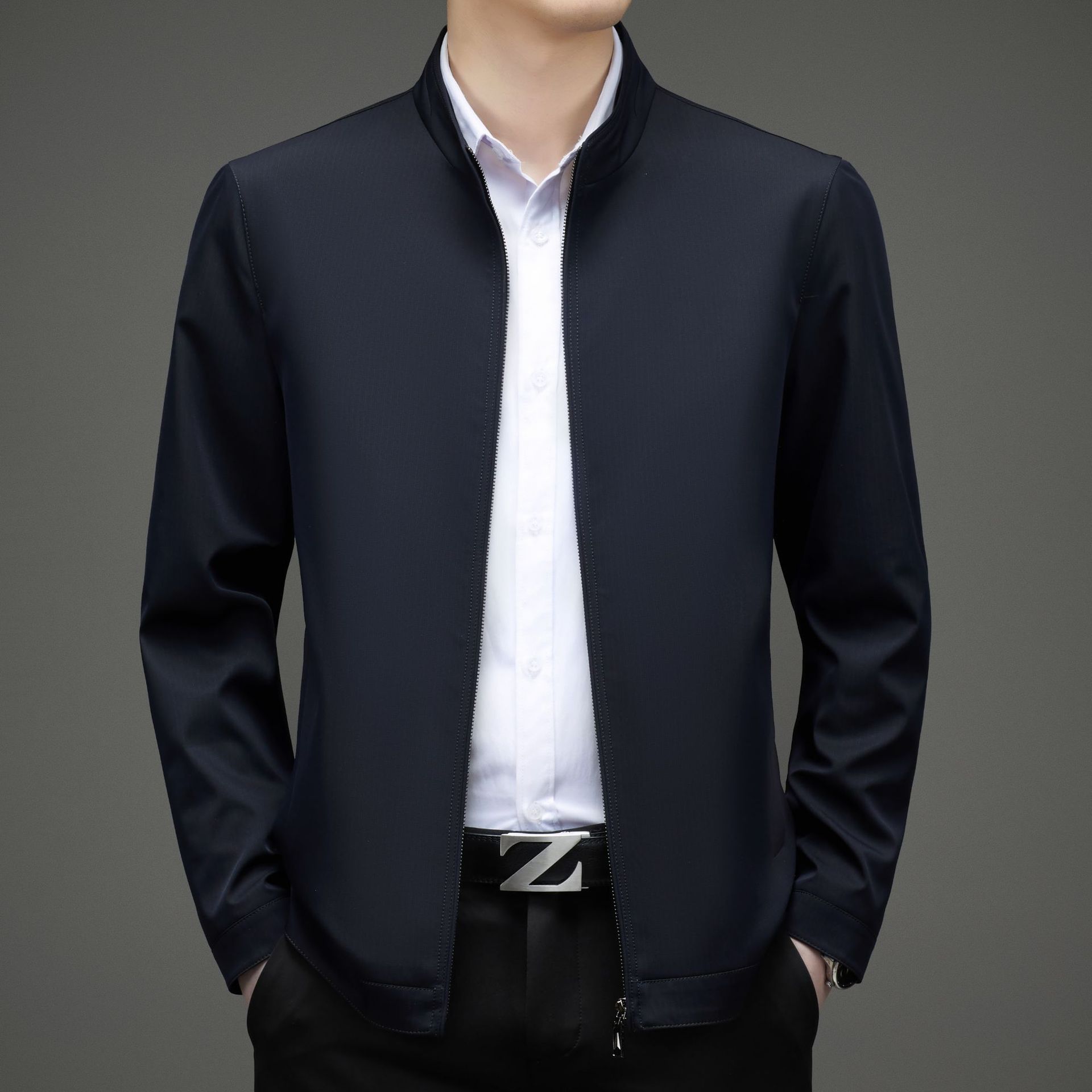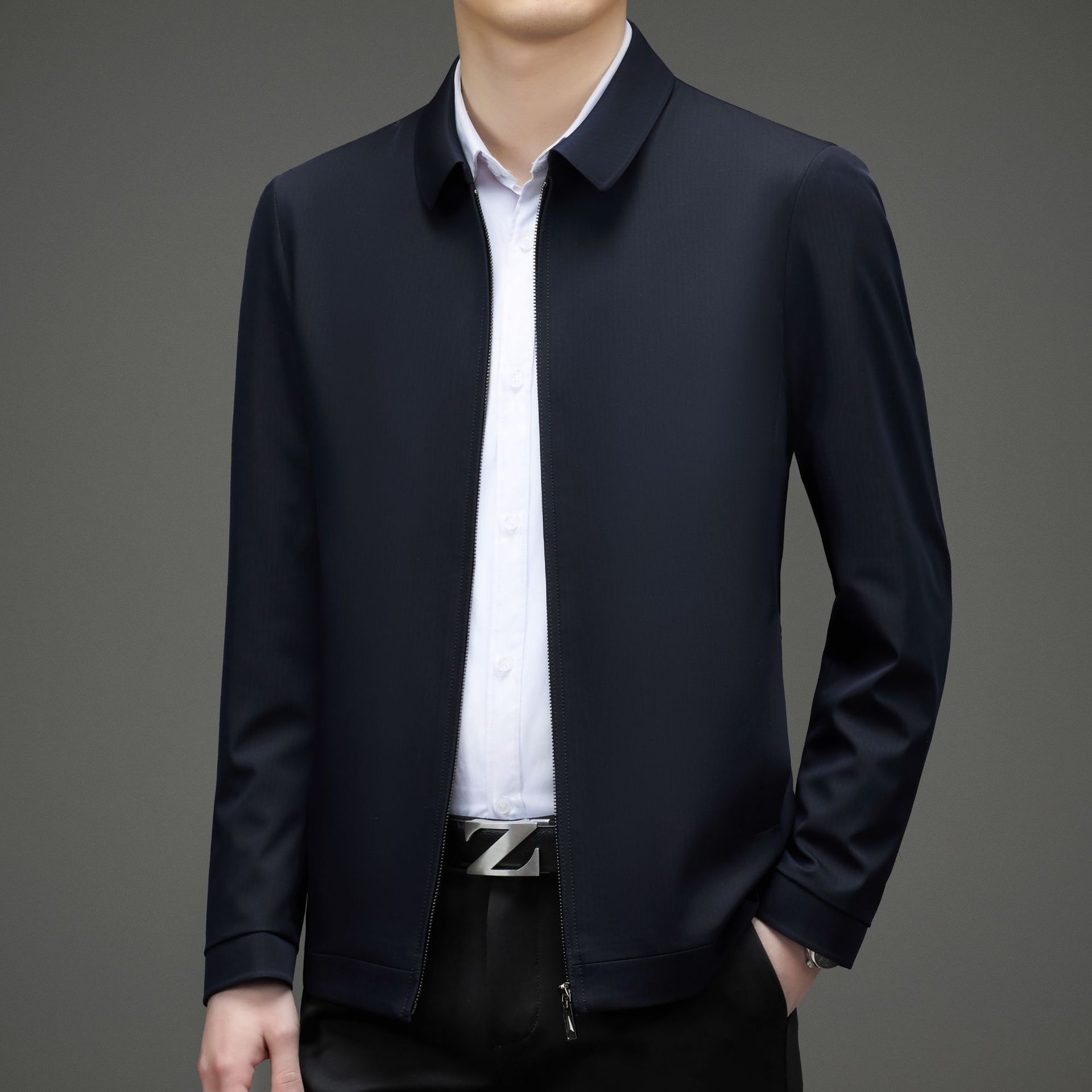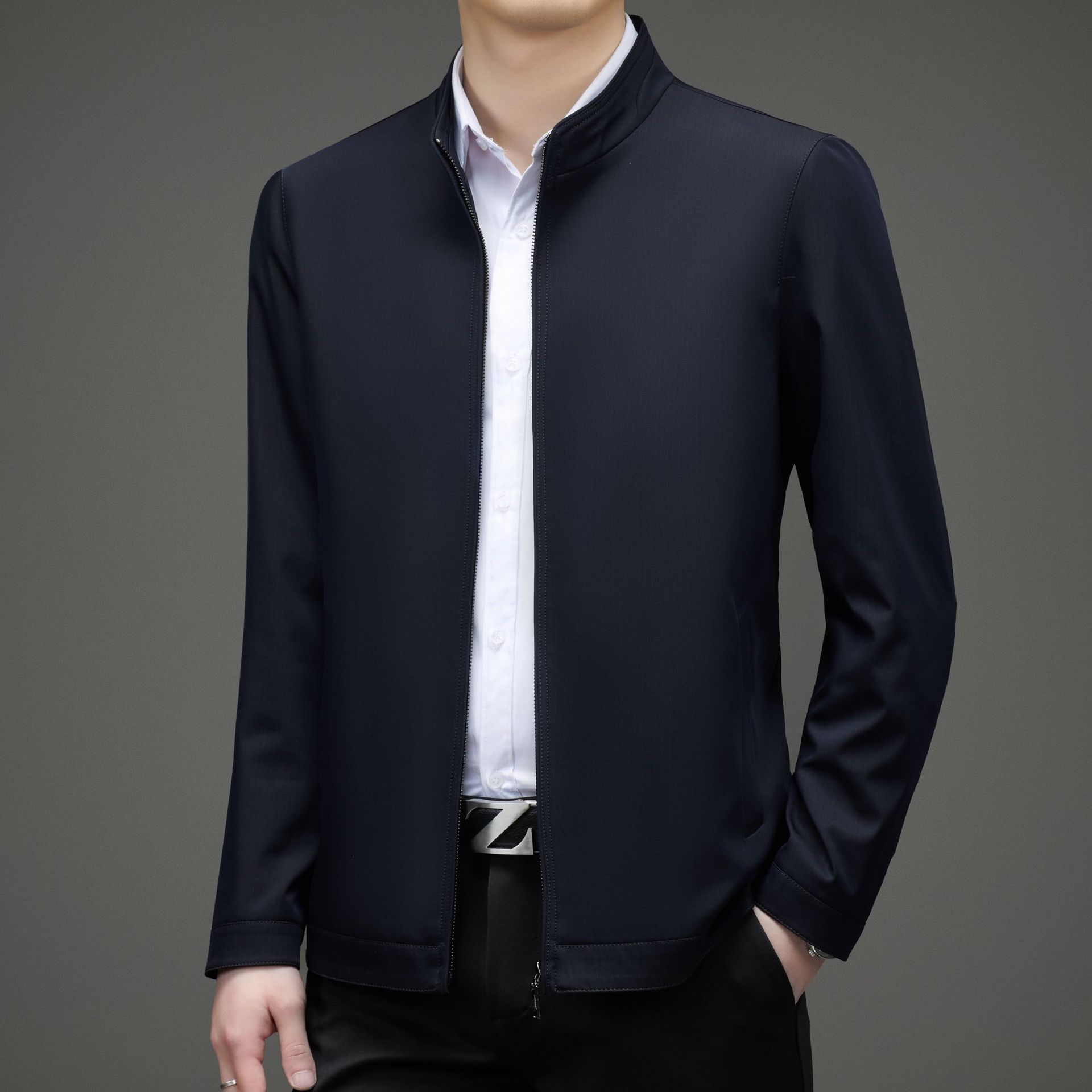 Mùa xuân và mùa thu mới chất lượng cao áo khoác nam công sở cổ đứng kẻ sọc nhỏ không ủi áo khoác cán bộ