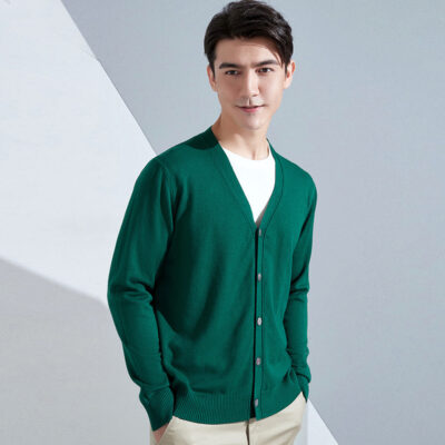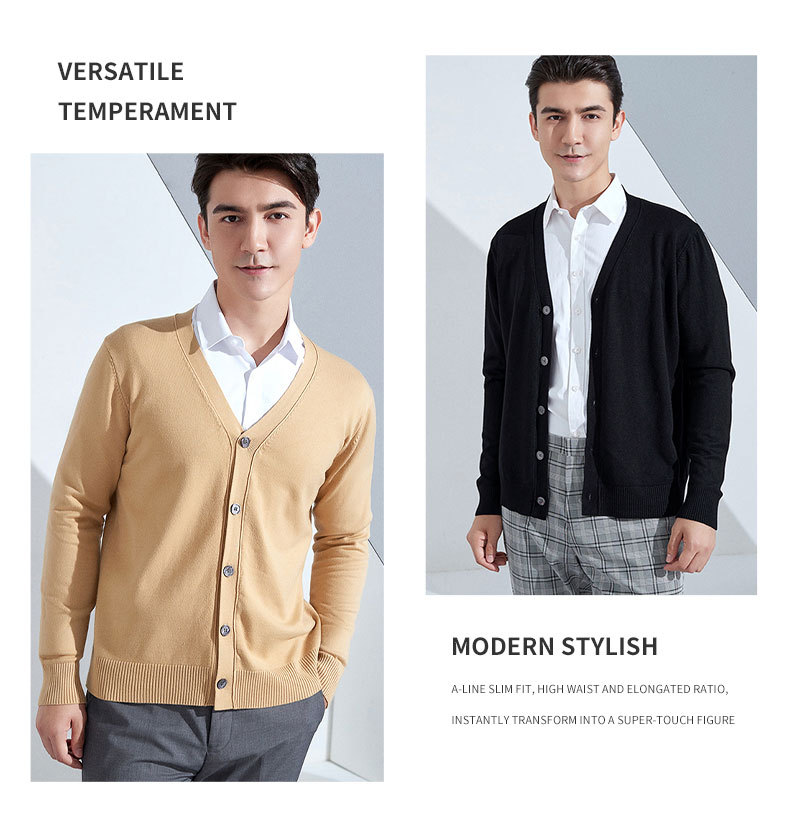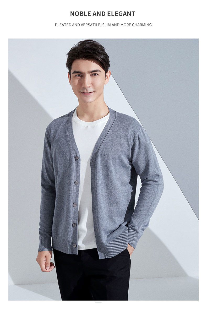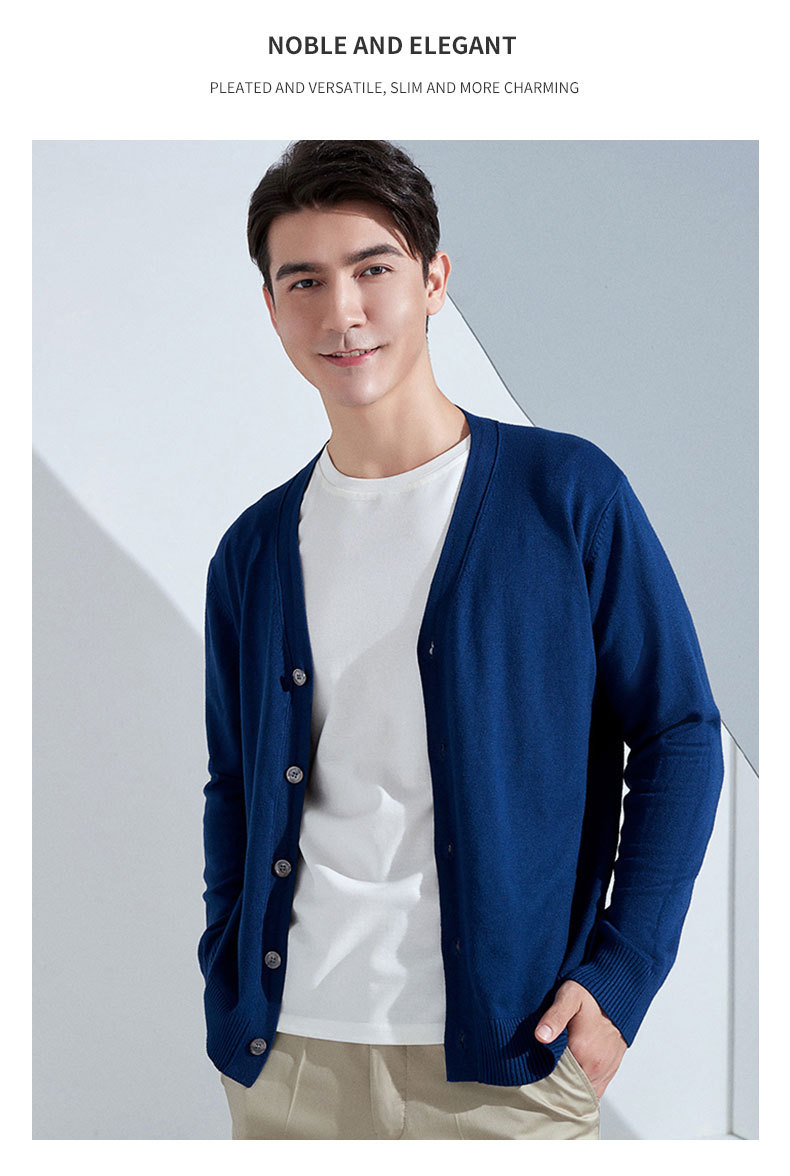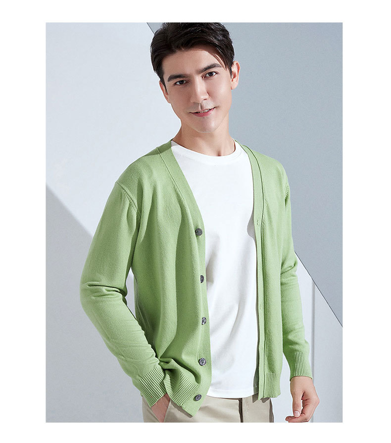 Mùa Xuân Và Mùa Thu Mới Nam Cổ Chữ V Cardigan Dệt Kim Dài Tay Màu Trơn Dáng Rộng Áo Len Cardigan Áo Len Dệt Kim