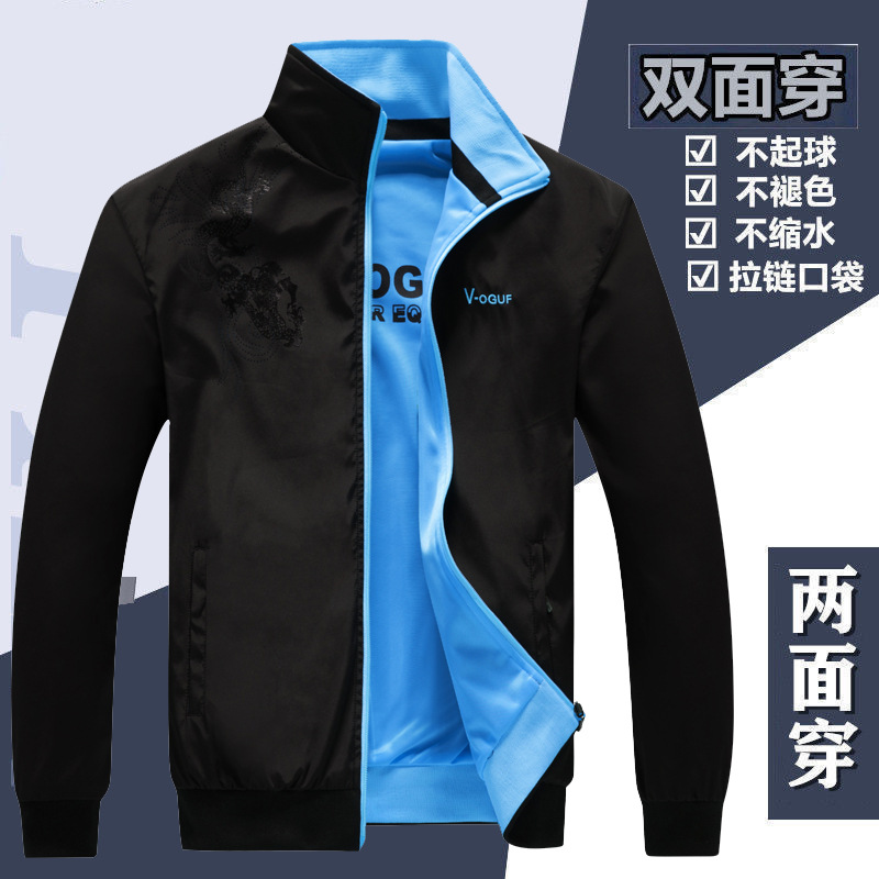 Mùa xuân và mùa thu nam có thể đảo ngược áo khoác thể thao giản dị chống gió áo khoác có thể đảo ngược áo khoác rộng kích thước lớn không lót quần áo thủy triều
