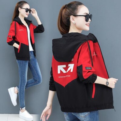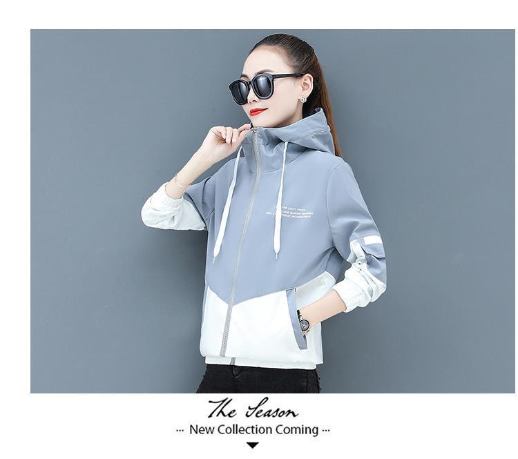 Mùa xuân và mùa thu ngắn có mũ trùm đầu phiên bản mới của phụ nữ Hàn Quốc rộng rãi áo khoác gió nhỏ áo khoác bóng chày