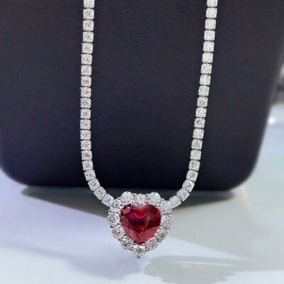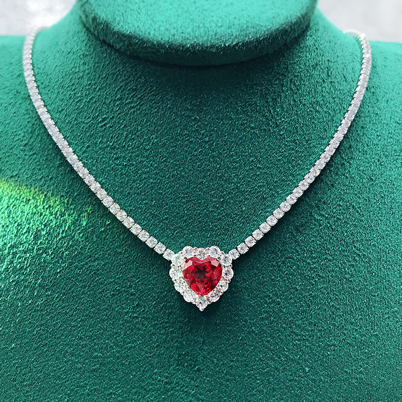 Mujing Trang Sức S925 Bạc Nữ Mặt Dây Chuyền Vòng Cổ 8*8 Hình Trái Tim Ruby Dát Thời Trang Kỷ Niệm Đính Hôn