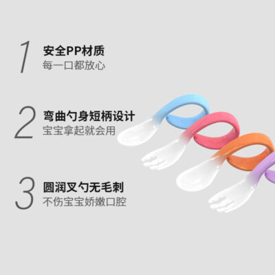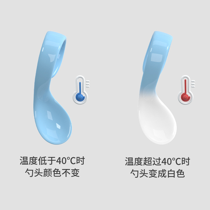 Muỗng nĩa đổi màu nhạy cảm với nhiệt độ dành cho trẻ em Bộ đồ ăn thức ăn bổ sung có tay cầm cong cho bé