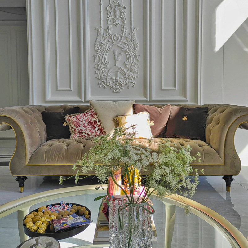 Mỹ Ánh Sáng Sang Trọng Gỗ Chắc Chắn Cao Cấp Caracole Sofa Vải Phòng Khách Đơn Giản Ins Lưới Khóa Đỏ Nghệ Thuật Sofa Da