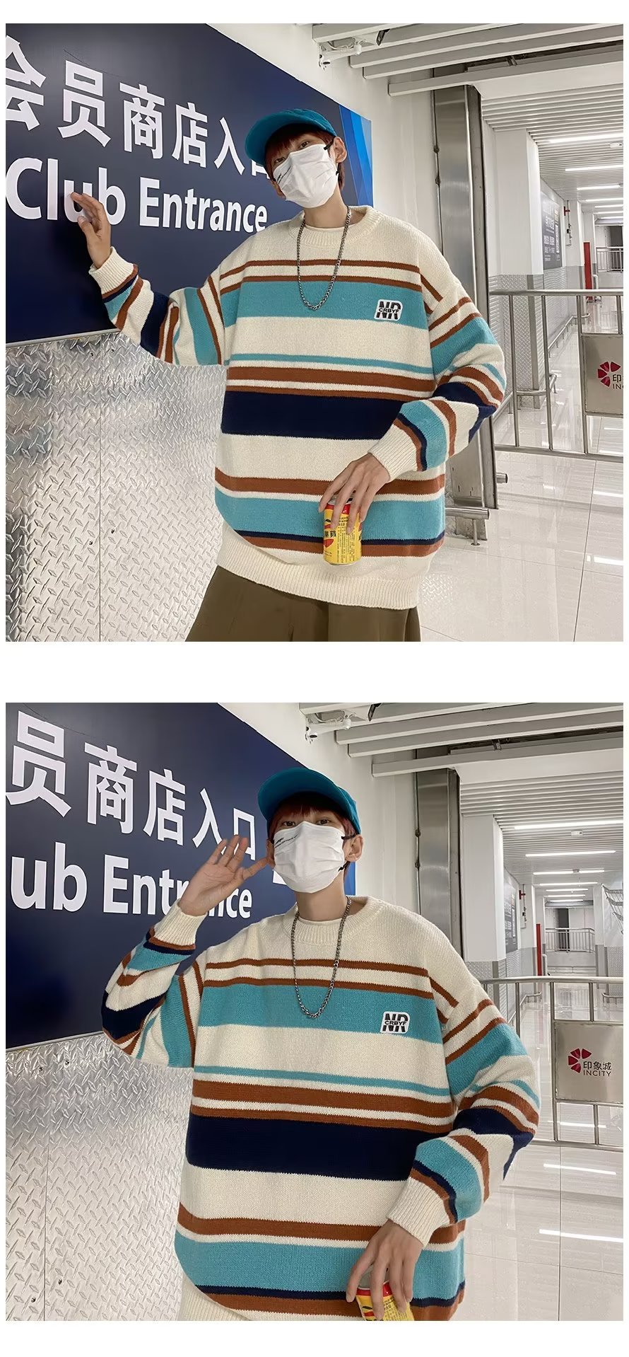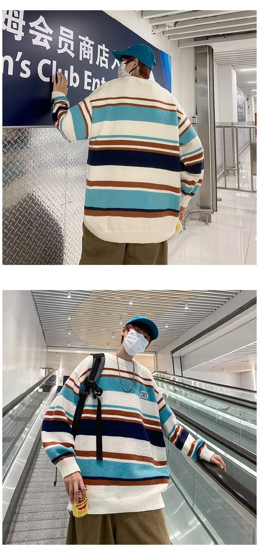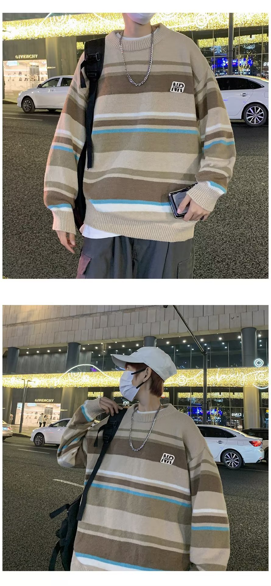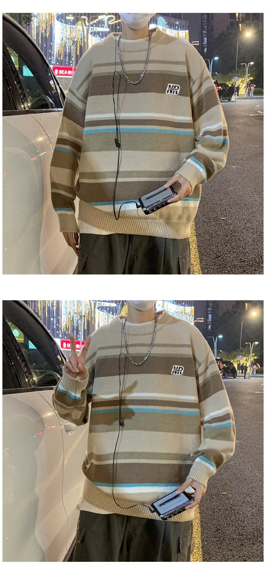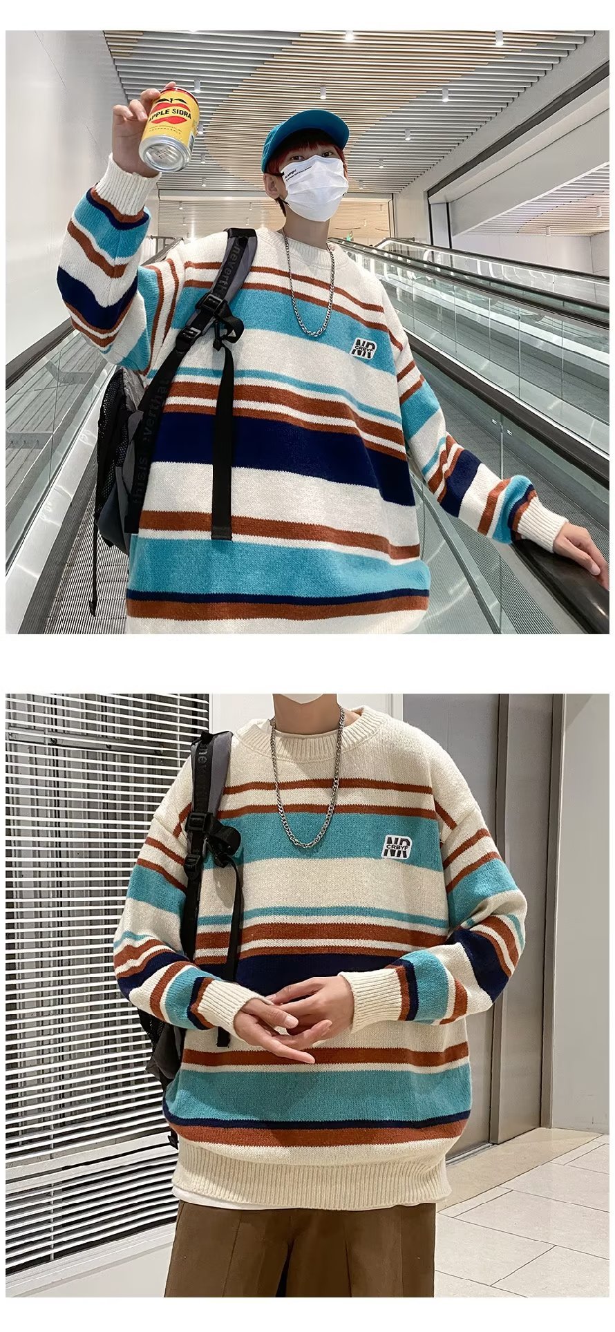 Mỹ áo len nam nữ phong cách retro cơ bản áo len sọc trắng đen áo chui đầu cổ tròn rời áo len dày dặn