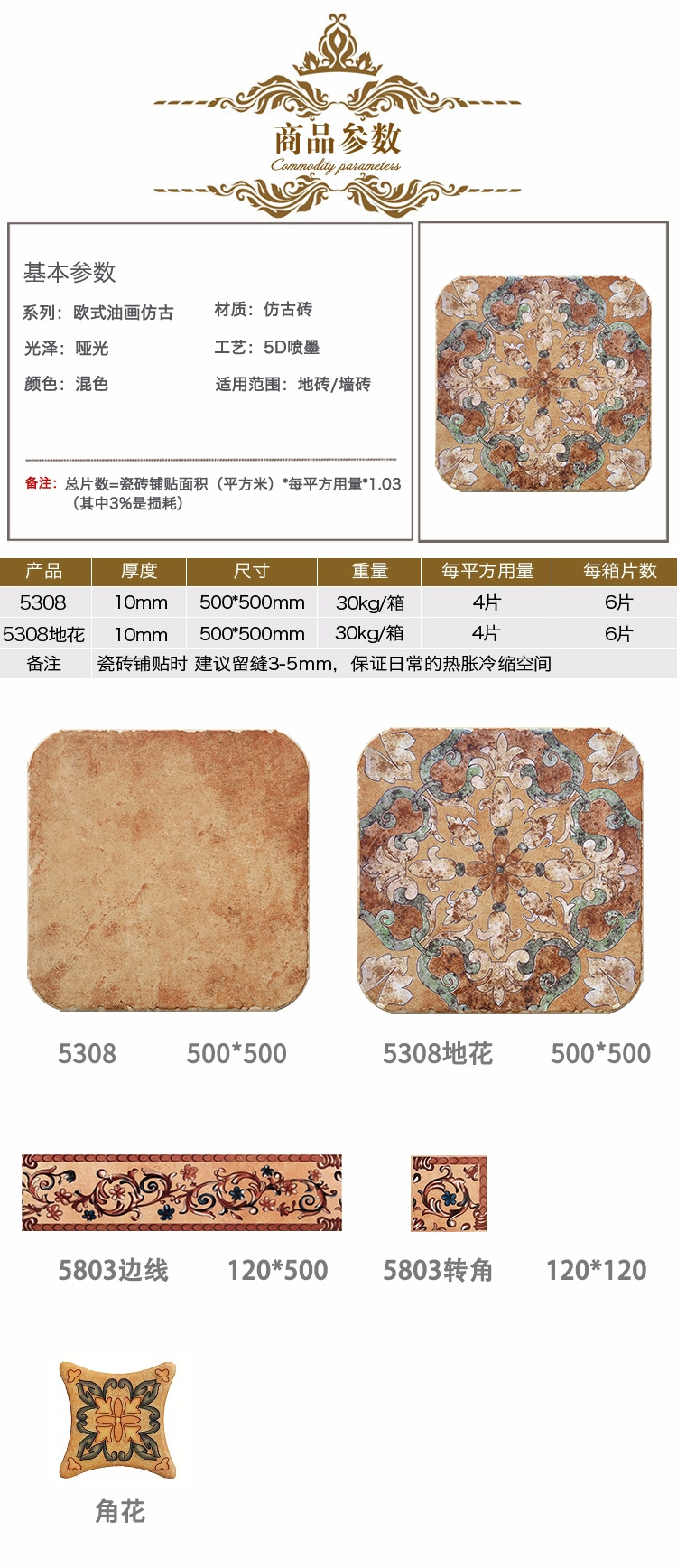 Mỹ bo tròn cổ gạch 500×500 gạch ốp tường nhà tắm gạch lát nền ban công gạch lát nền nhà bếp