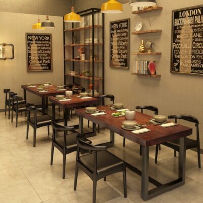 Mỹ Gỗ Chắc Chắn Bàn Ăn Lẩu Cafe Bình Thường Bàn Ghế Kết Hợp Retro Nhà Hàng Sắt Rèn Bàn Ăn