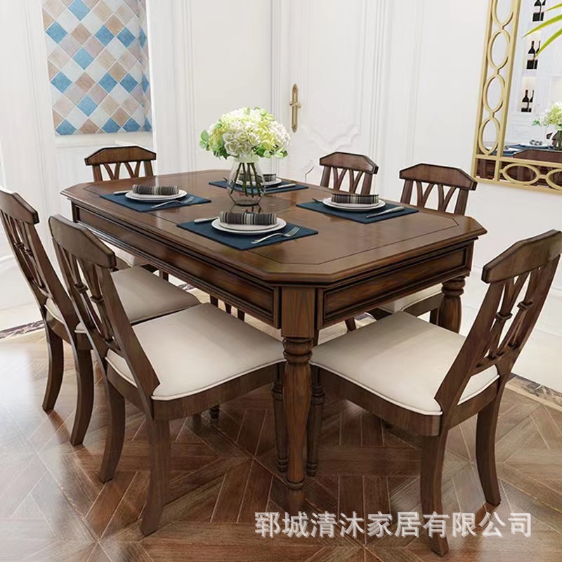Mỹ gỗ hình chữ nhật bàn ăn bằng gỗ phòng khách nhà bếp nội thất gỗ nguyên khối tro gỗ nhà kết hợp ghế ăn