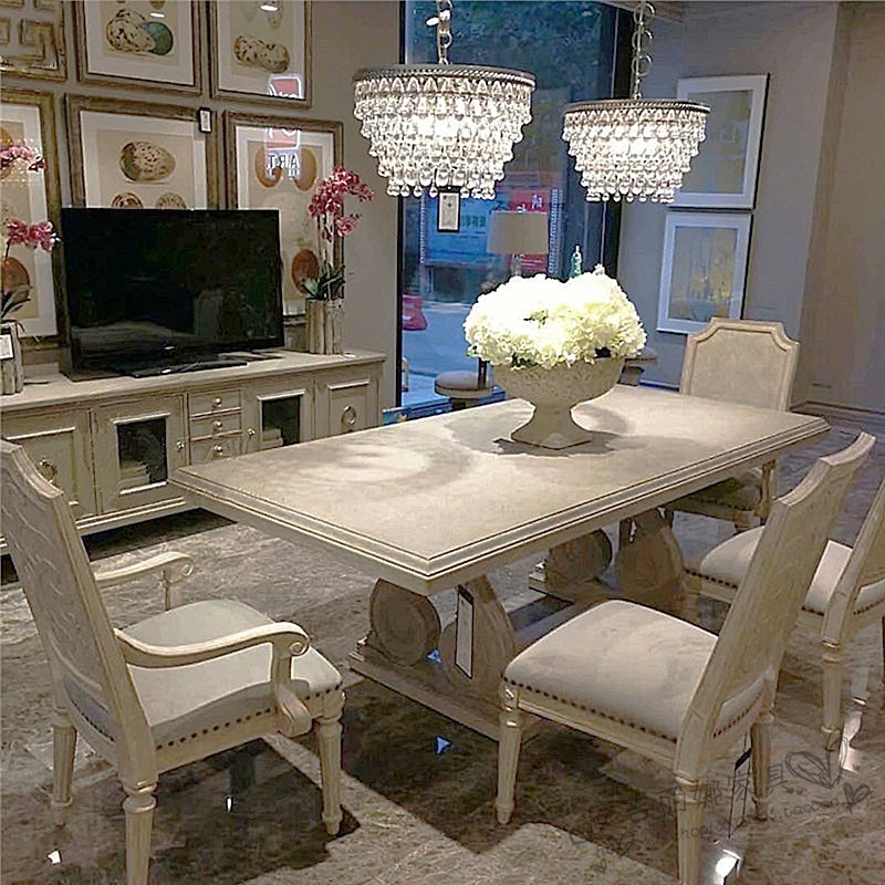 Mỹ NGHỆ THUẬT nhẹ nhàng sang trọng bàn ăn gỗ nguyên khối kiểu Pháp cổ điển hình chữ nhật nhiều người bàn ăn hồi sinh kiến trúc nội thất gỗ nguyên khối