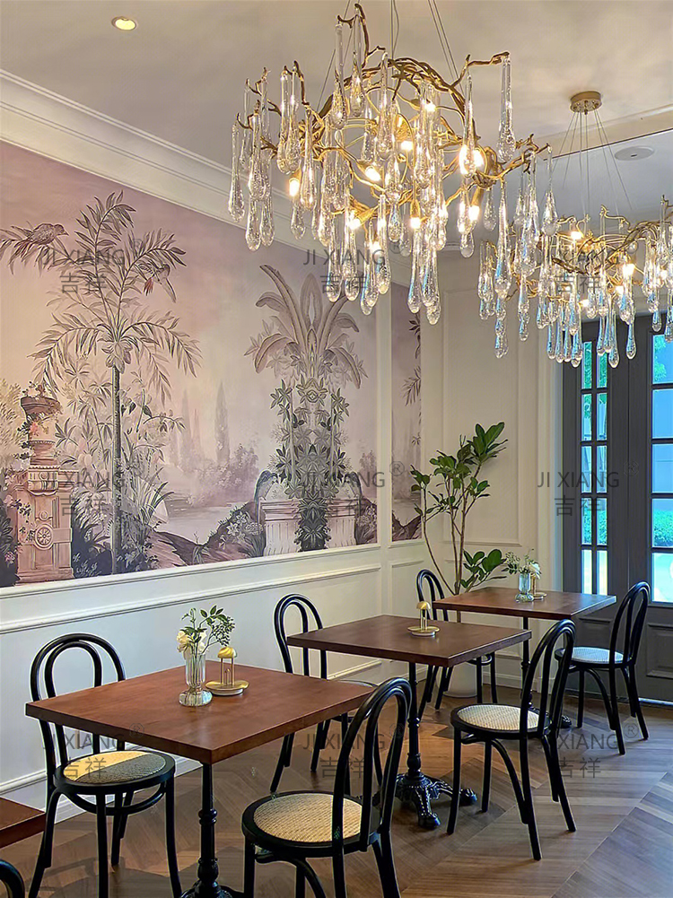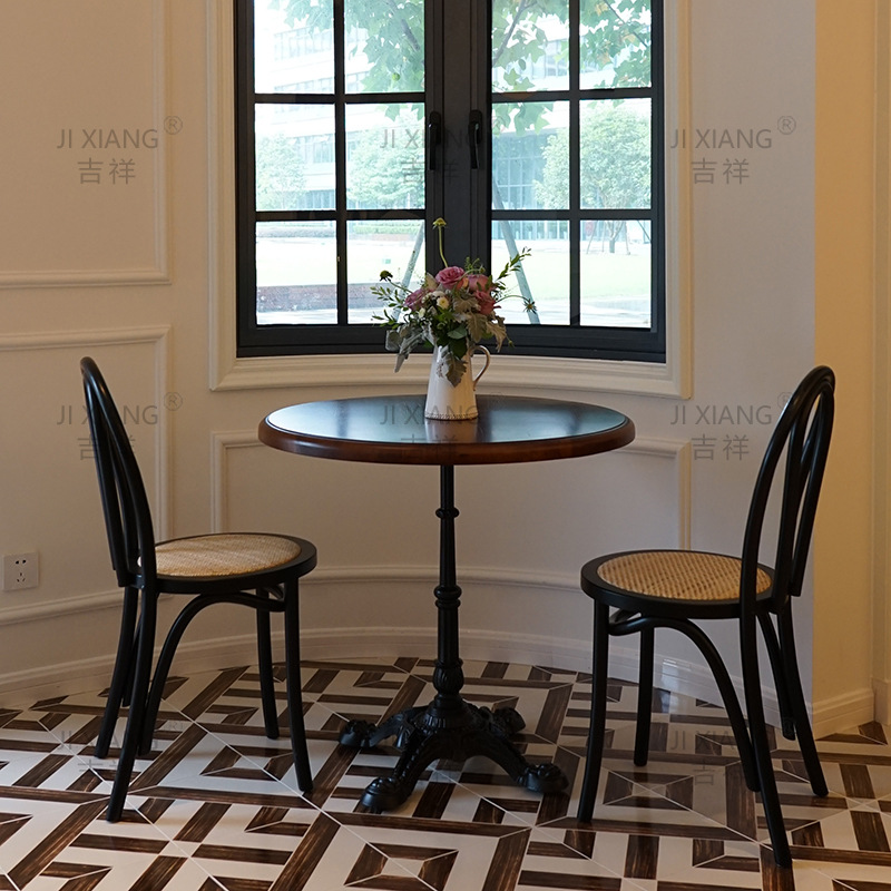 Mỹ phong cách cổ điển gỗ đặc cafe bàn ghế kết hợp nhà hàng Qing bar cửa hàng tráng miệng sắt thời trung cổ bàn vuông nhỏ đơn giản