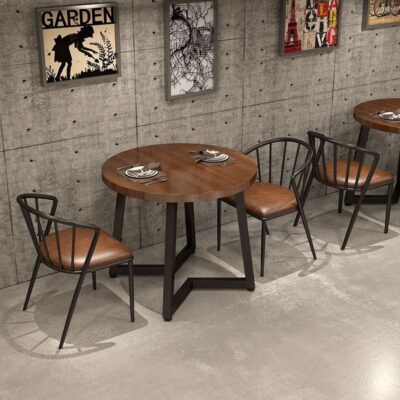 Mỹ phong cách cổ điển gỗ nguyên khối bàn vuông nhỏ nhà hàng khách sạn rèn bàn ăn và ghế kết hợp quán trà sữa quán cà phê bàn tròn