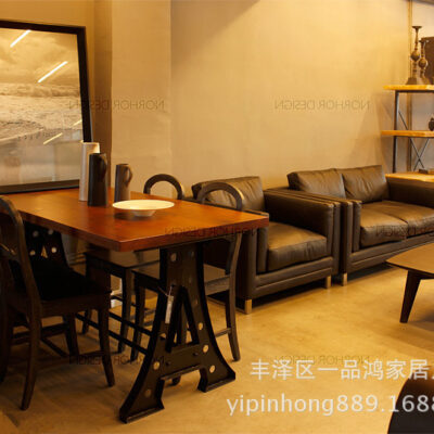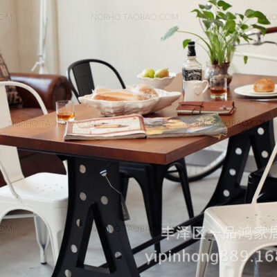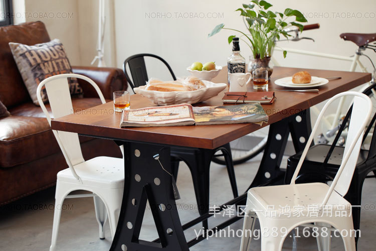 Mỹ phong cách cổ điển gỗ rèn sắt nhà hàng bộ bàn ghế ăn kết hợp cafe thanh nâng bàn ghế xoay phân