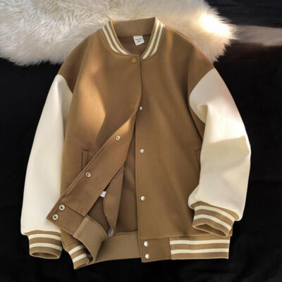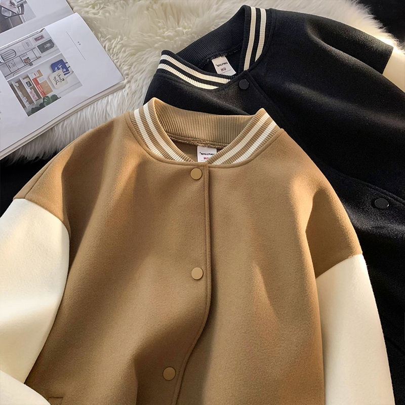 Mỹ phong cách retro màu sắc tương phản đường may áo khoác nữ mùa xuân và mùa thu triều rời đồng phục bóng chày áo khoác