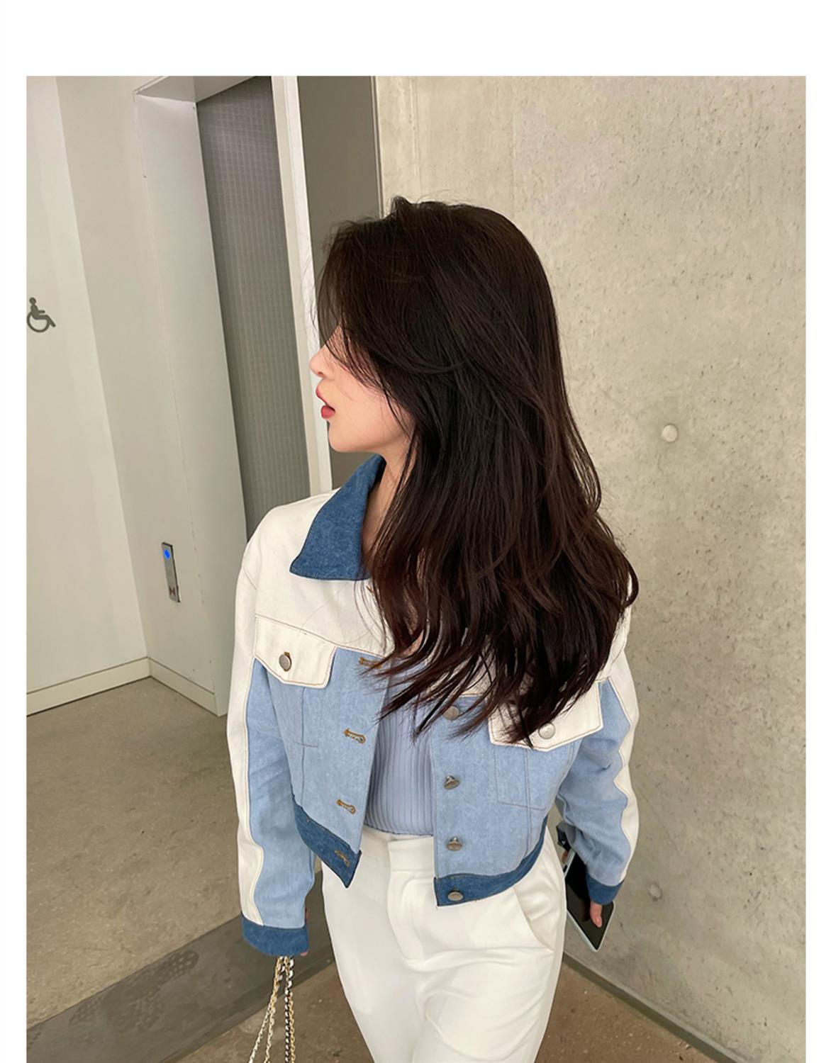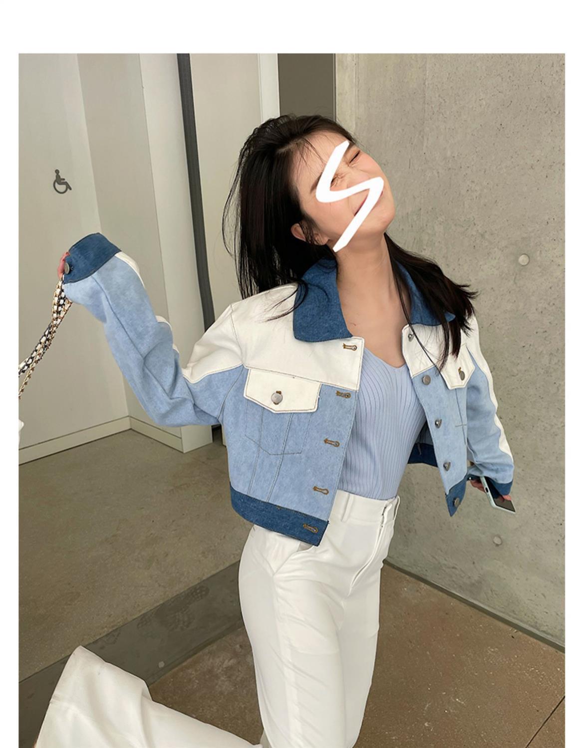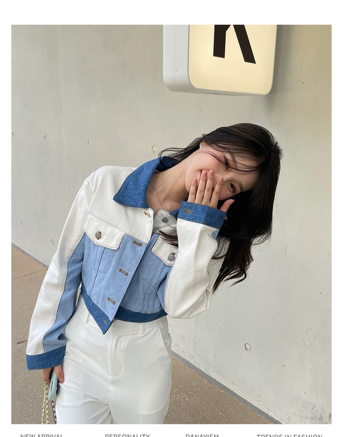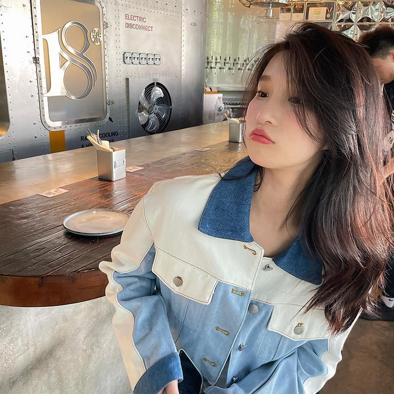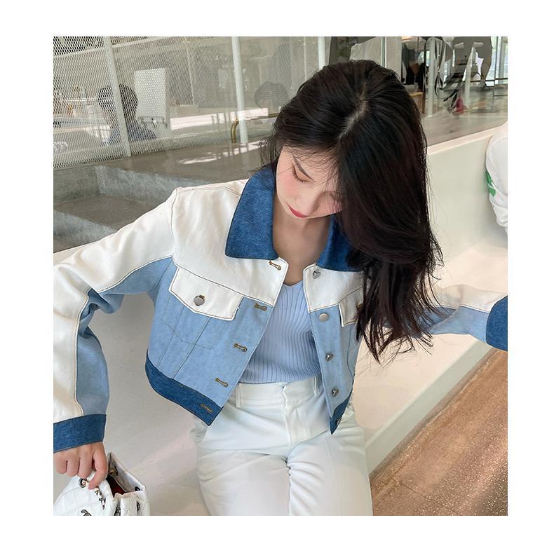 Mỹ Retro Áo khoác denim nữ đầu mùa thu mới rời phiên bản Hàn Quốc thích hợp ngắn nối áo khoác cao cấp