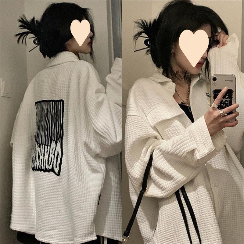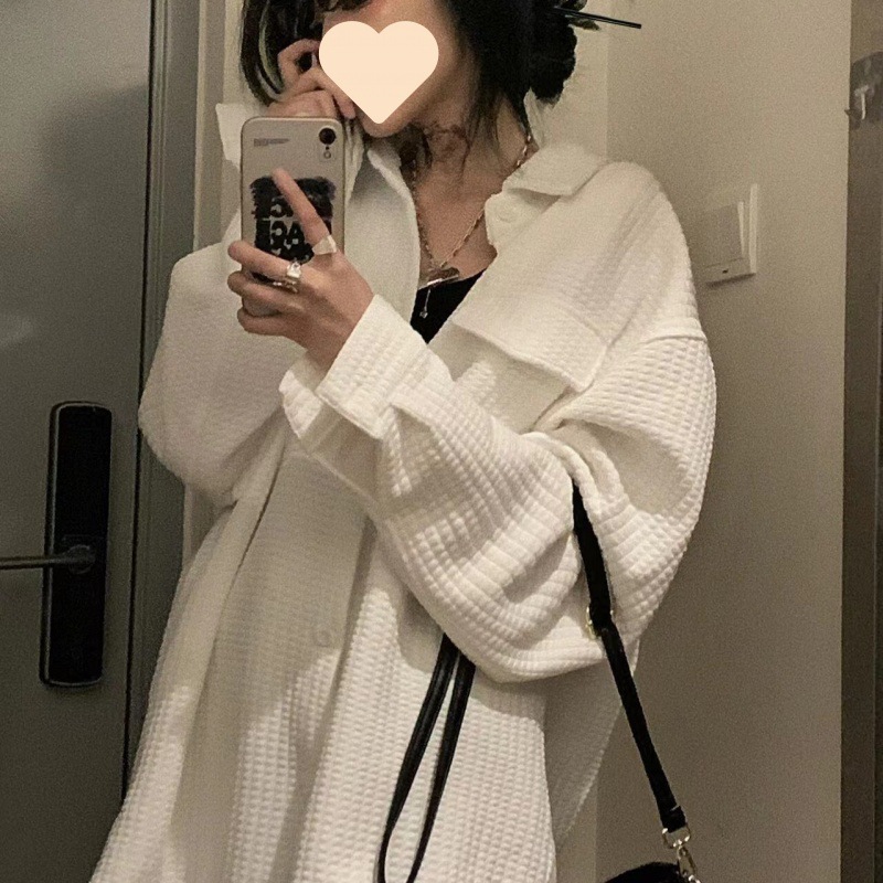 Mỹ Retro Bánh Waffle Áo Len Nữ Xuân Thu Rời Lười Áo Khoác Gió Tay Dài Đồng Phục Bóng Chày