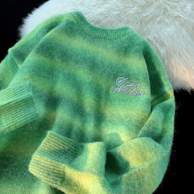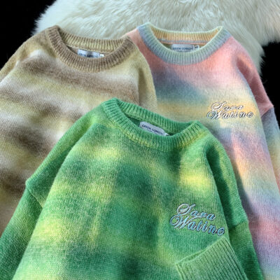 Mỹ Sọc Cầu Vồng Thiết Kế Thích Hợp Áo Len Nam Mùa Thu Lười Gió Áo Len Dài Tay Cổ Tròn