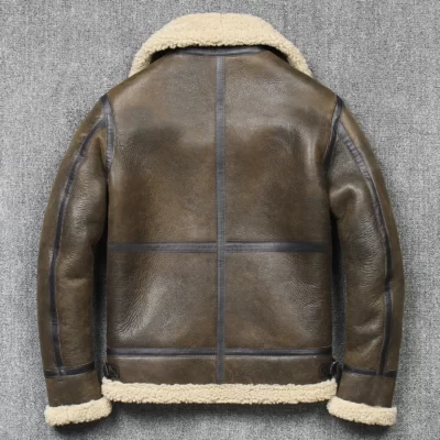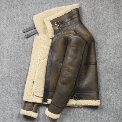 2022Winter Bomber Genuine Leather Jacket Men Sheep Shearling Lambskin Warm Jackets High Quality Japanese Version B3 Fur Collar