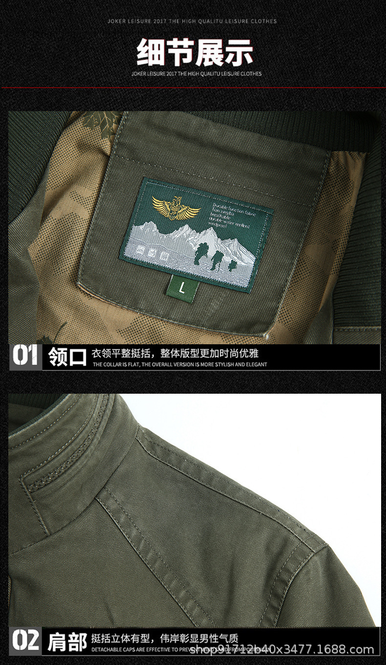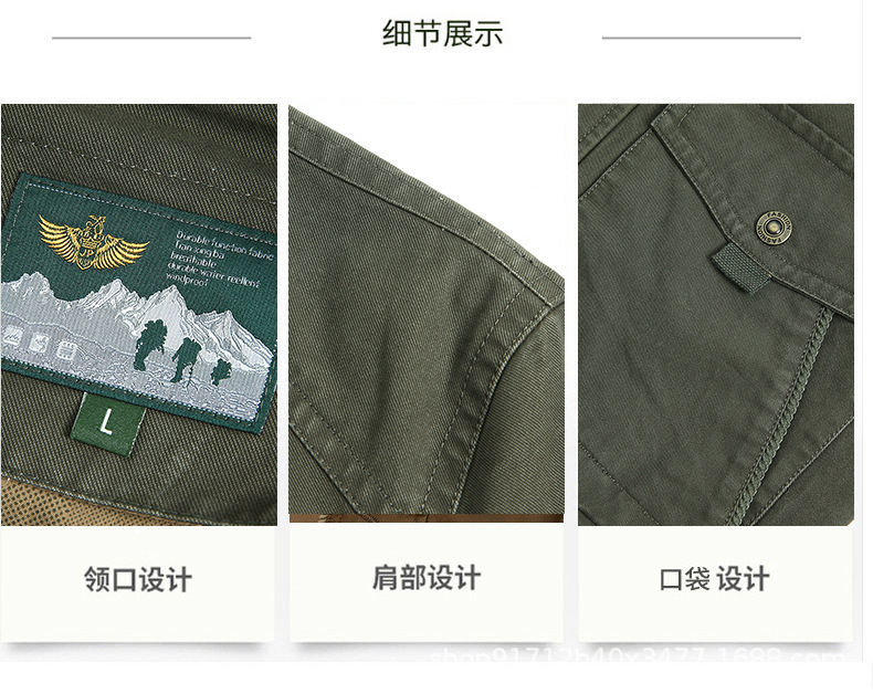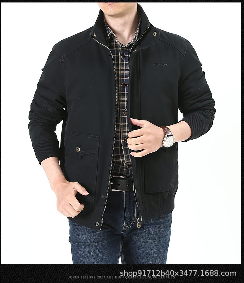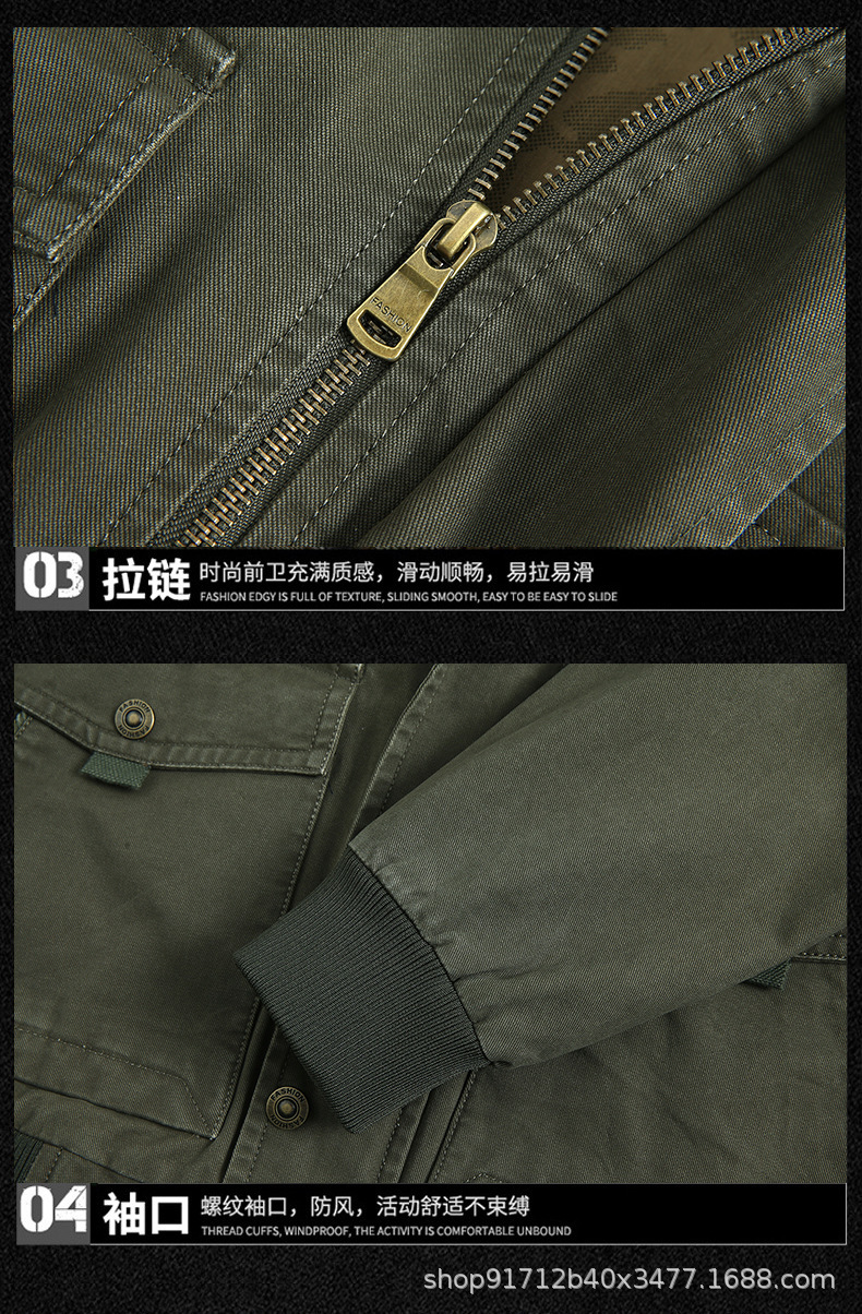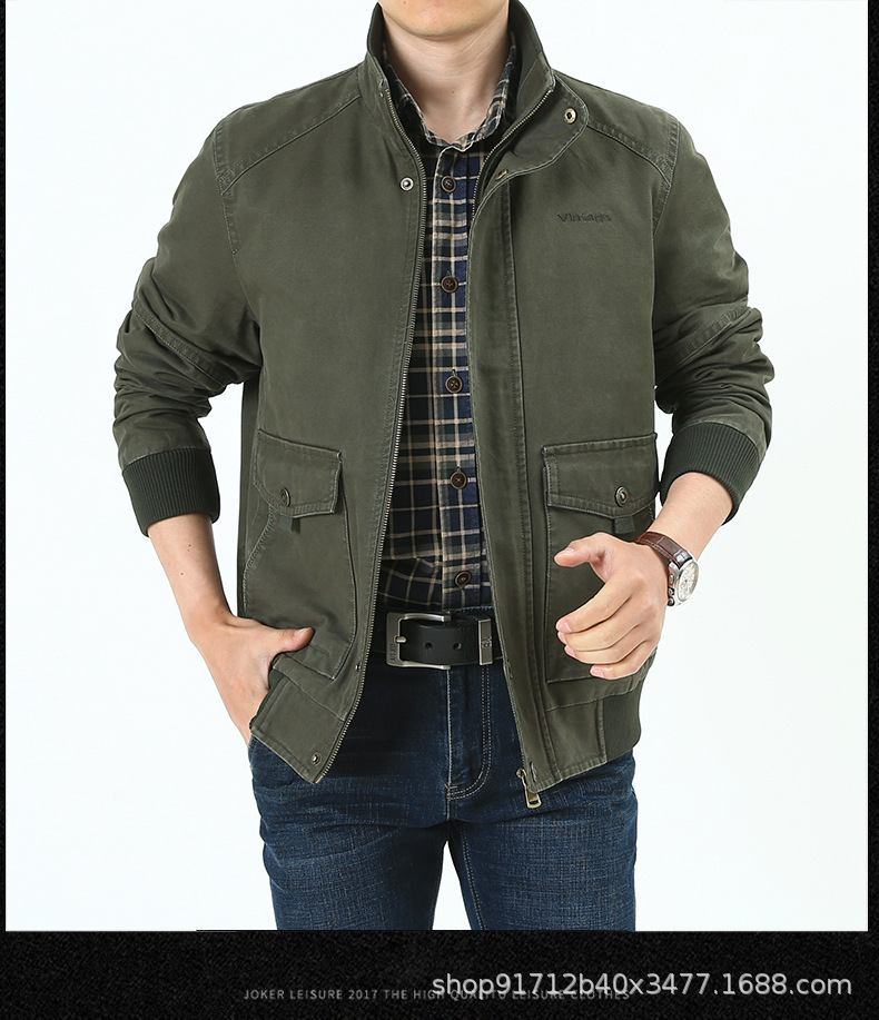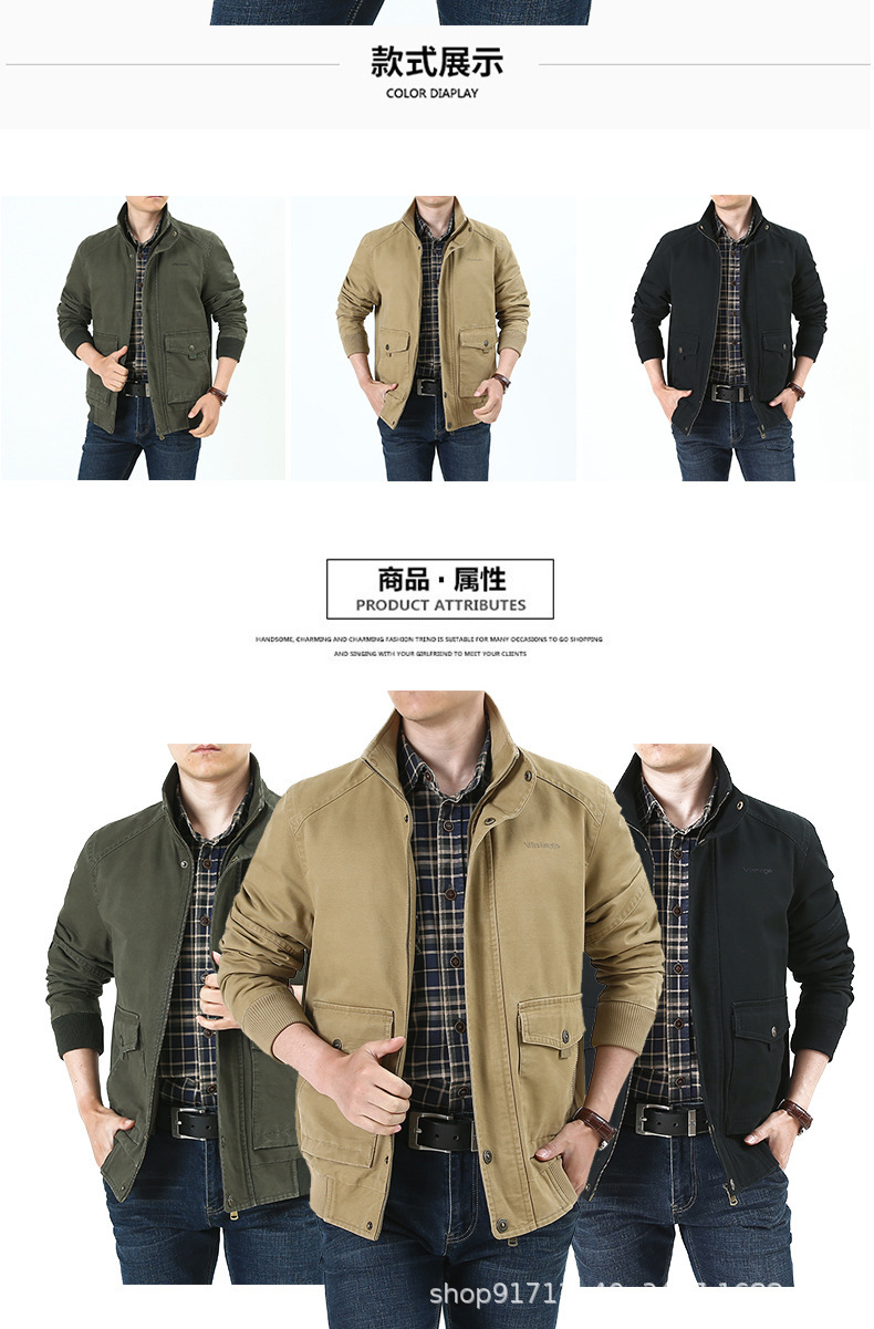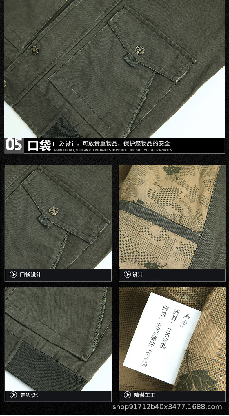 Năm 9803 Mới Mùa Xuân Và Mùa Thu Áo Khoác Nam Cổ Đứng Cotton Nhiều Túi Trung Niên Bố Áo Mỏng áo Sơ Mi Nam
