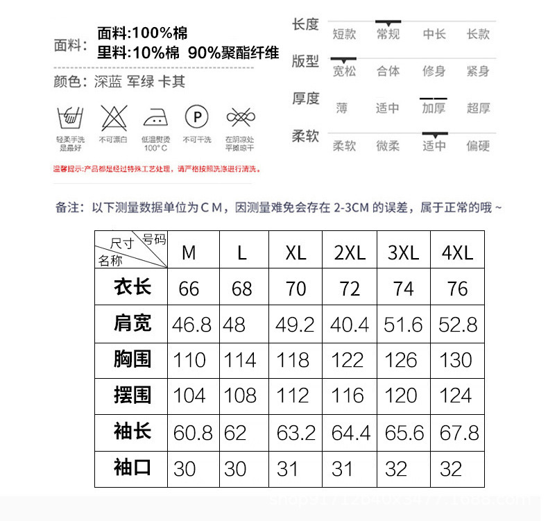 Hoa văn: Đồng màu Nguồn Danh mục: Túi may sẵn Phong cách: Đường kẻ đậm Chất liệu vá Chức năng: Chống mài mòn/Chống gió/Chống rách/Chống rách Danh mục sản phẩm: Áo khoác Màu sắc: Khaki/Xanh quân đội/Xanh đen/Xanh đen Hàm lượng vải chính: 100 Hàng tồn kho: Có hoặc không Báo cáo kiểm tra chất lượng: Không Phù hợp với đối tượng: Trung niên Kích thước: M/L/XL/XXL/XXXL/XXXXL/XXXXL Phiên bản: Loại rộng Danh mục mua sắm: Thành phố thời trang (24-35 tuổi) Lót thành phần: Sợi axetat Hàm lượng thành phần lớp lót: 100 Loại cổ áo: Cổ áo đứng Cho dù xuất khẩu xuyên biên giới Nguồn cung cấp độc quyền: Không Độ dày: Thông thường Thương hiệu: Khác Mã sản phẩm: 9803 Tên vải: Cotton: Dây kéo Loại tay áo: Tay áo thông thường Thành phần vải chính: Cotton Chiều dài: Thông thường Giới tính áp dụng: Nam Mùa thích hợp: Xuân và Thu Chiều dài tay áo: Dài tay Chi tiết phong cách: Trang trí nút Hàng may mặc Thiết kế viền: Viền tròn Phong cách: Business Formal Error Lề: 2 Nguồn thiết kế ban đầu: Không xử lý: Xử lý không ủi