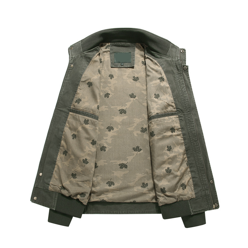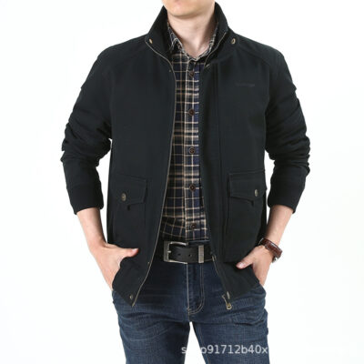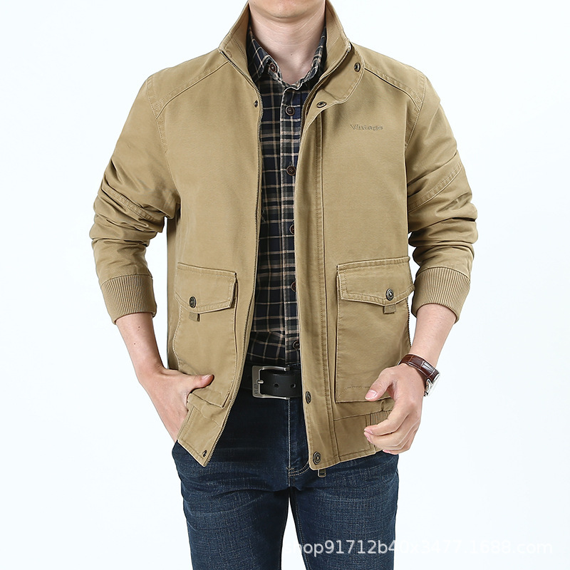 Năm 9803 Mới Mùa Xuân Và Mùa Thu Áo Khoác Nam Cổ Đứng Cotton Nhiều Túi Trung Niên Bố Áo Mỏng áo Sơ Mi Nam
